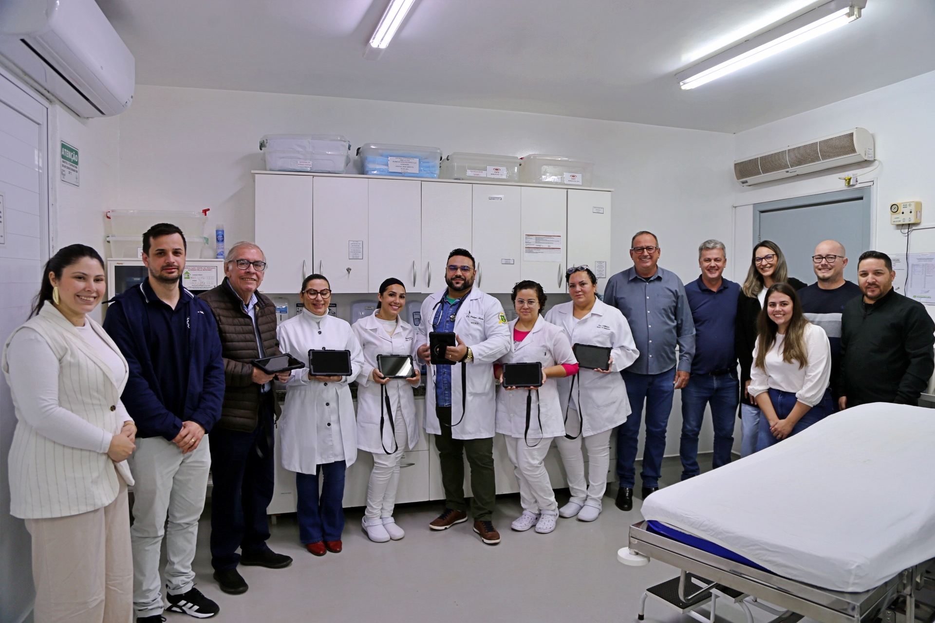 Nesta quinta-feira (14), o Hospital e Maternidade Itaipulândia recebeu 6 tablets e 1 celular destinados à equipe técnica de enfermagem, um investimento viabilizado pela Secretaria Municipal de Saúde com o apoio da Administração. A entrega foi realizada pelo prefeito Lindolfo Martins Rui e vice-prefeito Adolfo Florêncio Preis e pelo secretário de saúde Fernando Antunes. O repasse faz parte do processo de adequação e aprimoramento do sistema de gestão em saúde, recentemente adquirido pelo município de Itaipulândia com auxílio do setor de tecnologia que foi representado por Ricardo Frederico Lã e Cleberson Bastian. Essa modernização já tem contribuído para agilizar processos, reduzir erros e facilitar o registro das informações hospitalares, tornando o atendimento mais seguro e eficiente.