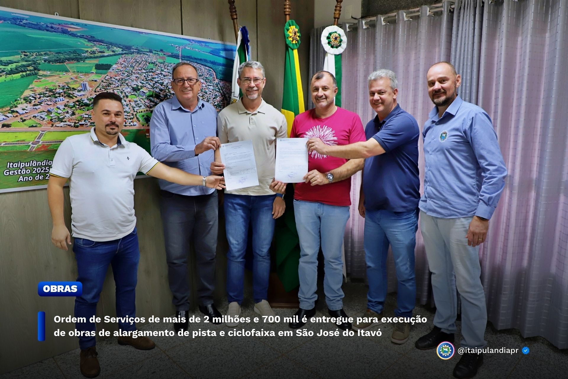A assinatura ocorreu no gabinete oficial e contou com a presença do Prefeito Lindolfo Martins Rui, do Vice-Prefeito Adolfo Preis, dos Secretários de Obras e Planejamento Vilso Nei Serena e Paulo Vanderlei Bayerle, do fiscal de contrato da obra engenheiro Claudio Milani e representante da empresa vencedora da licitação que executará as obras. O projeto prevê o alargamento das faixas de rolamento e criação de ciclofaixa em 2.9 kms de extensão.