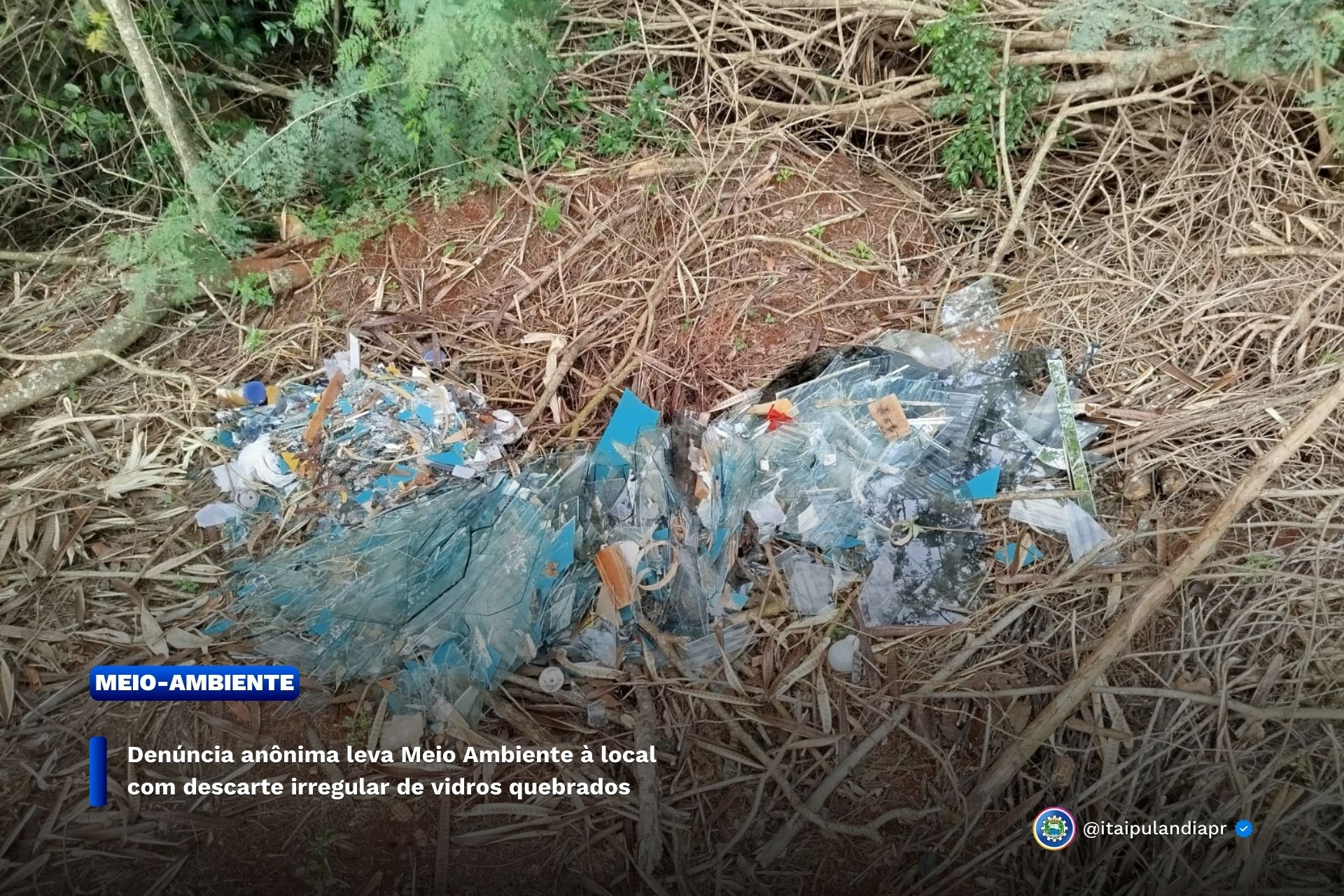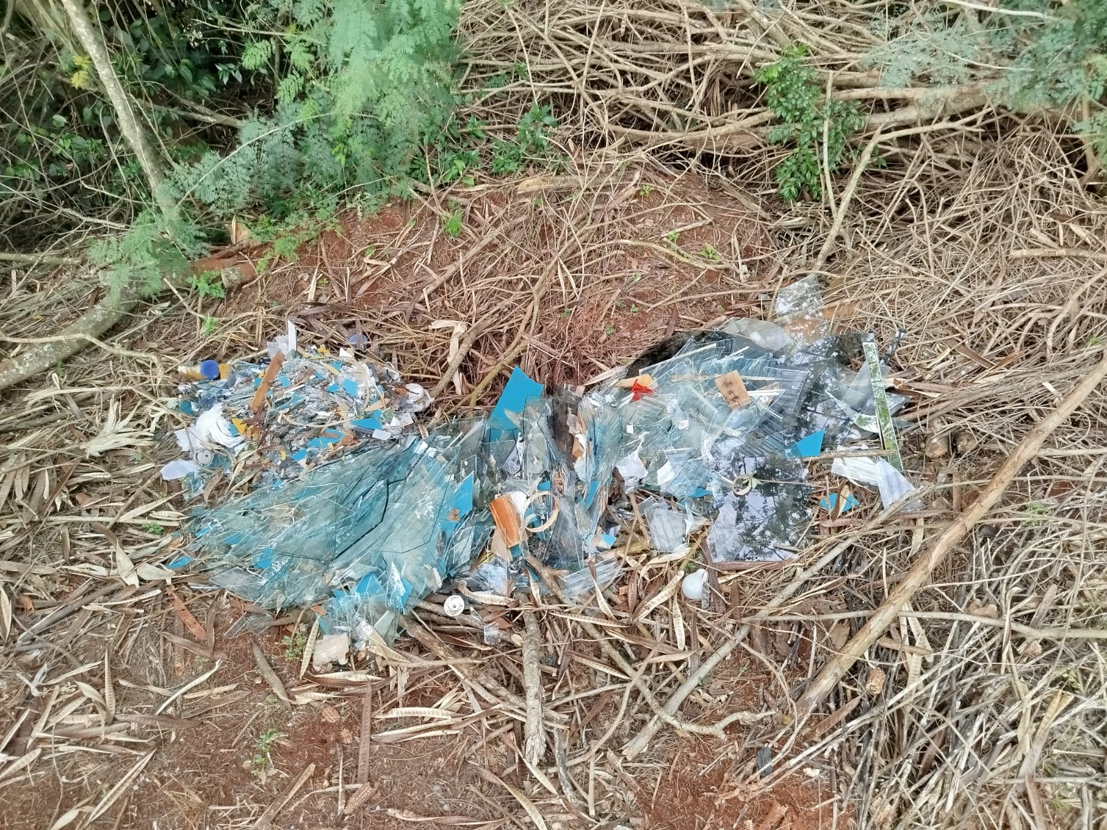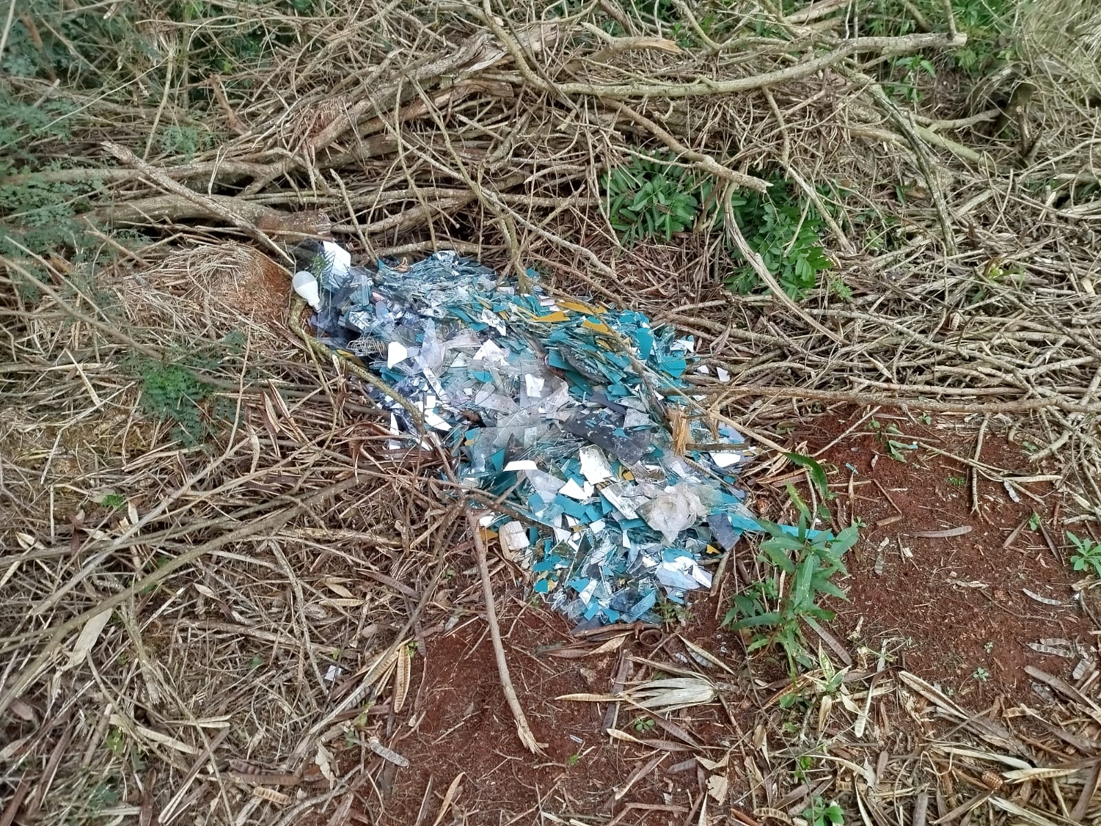 Denúncia anônima leva Meio Ambiente à local com descarte irregular de vidros quebrados