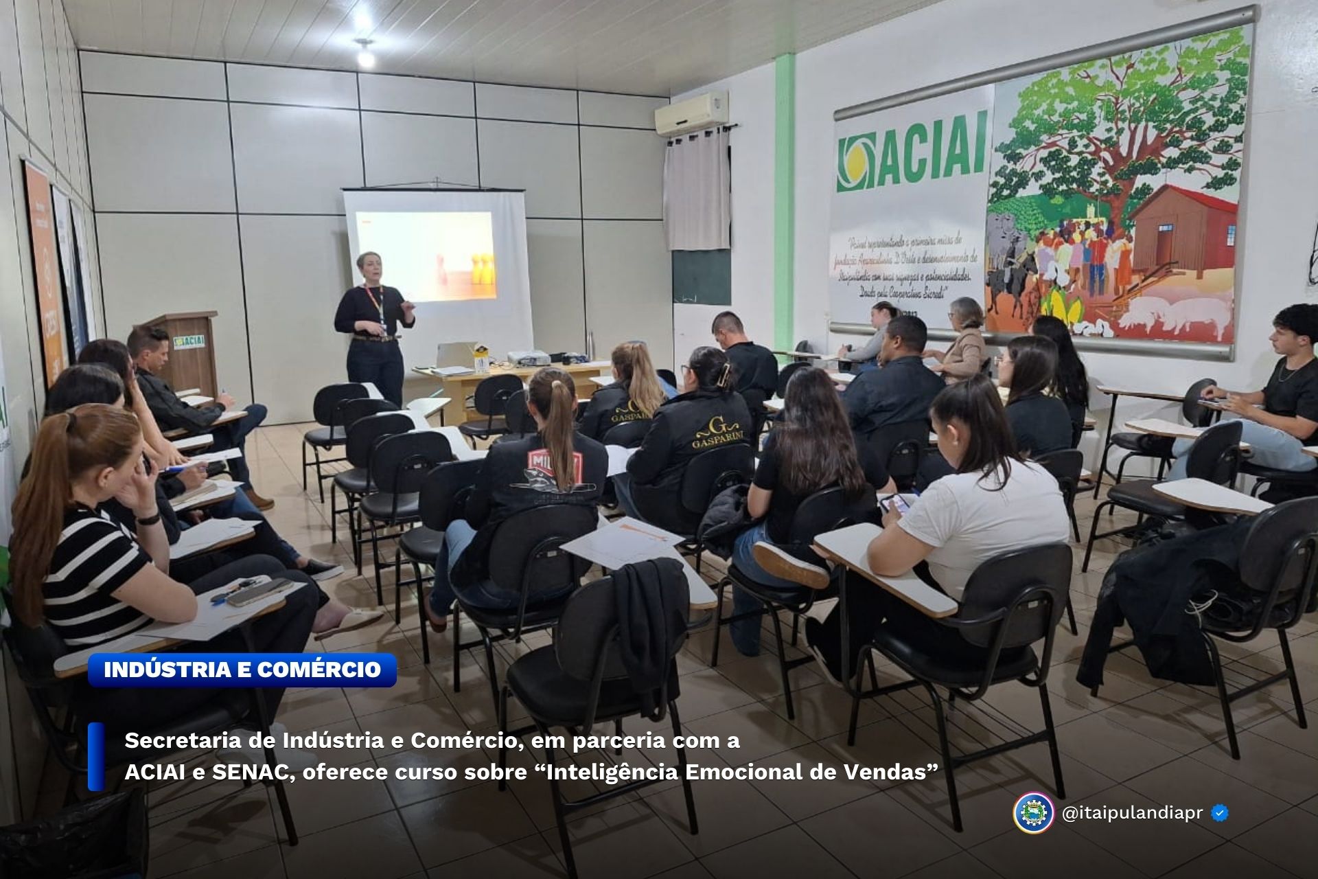 Na noite de ontem, terça-feira (19), a Secretaria de Indústria e Comércio, por meio do Departamento de Indústria e Comércio, em parceria com o SENAC e ACIAI, foi dado início ao curso “Inteligência Emocional em Vendas”, voltado para empresário e colaboradores, totalmente gratuito.