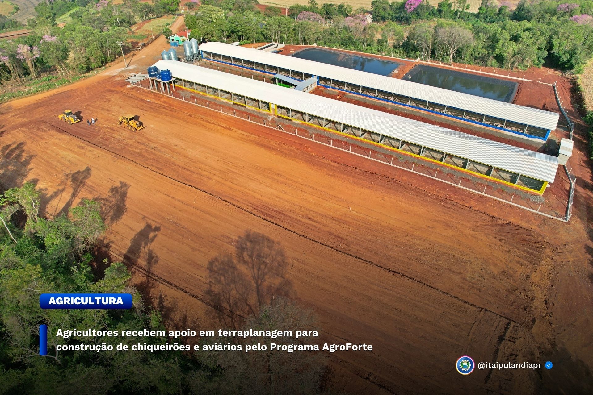 Com o objetivo de fortalecer o setor produtivo e incentivar o crescimento da produção agropecuária, o município de Itaipulândia, por meio do Programa AgroForte, tem realizado importantes ações de apoio aos produtores rurais do município. Entre os serviços ofertados, destaca-se a realização de obras de terraplanagem para a construção de chiqueirões e aviários, essenciais para ampliar a capacidade produtiva e melhorar a infraestrutura nas propriedades.
