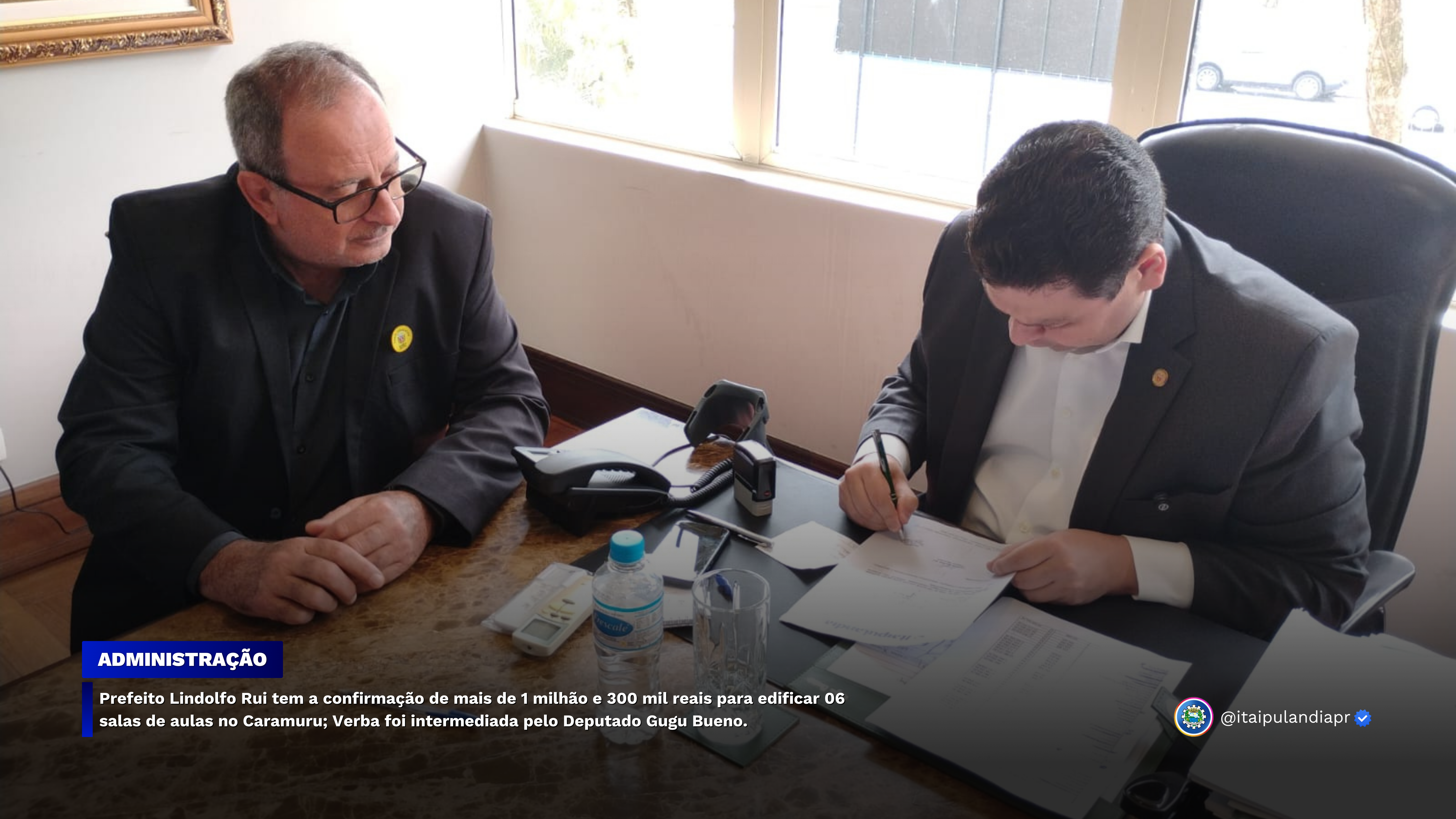 Prefeito Lindolfo Rui tem a confirmação de mais de 1 milhão e 300 mil reais para edificar 06 salas de aulas no Caramuru; Verba foi intermediada pelo Deputado Gugu Bueno