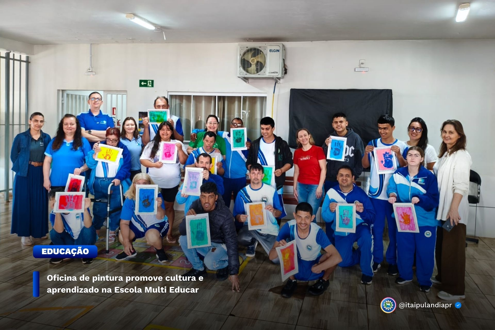 Na última sexta-feira (22), os alunos da Escola Multi Educar participaram de uma oficina de pintura realizada no período da manhã. A atividade integrou o projeto “Roda Cultural” e foi conduzida pela orientadora cultural Aline Baron, com apoio dos profissionais da escola e do Departamento de Cultura.