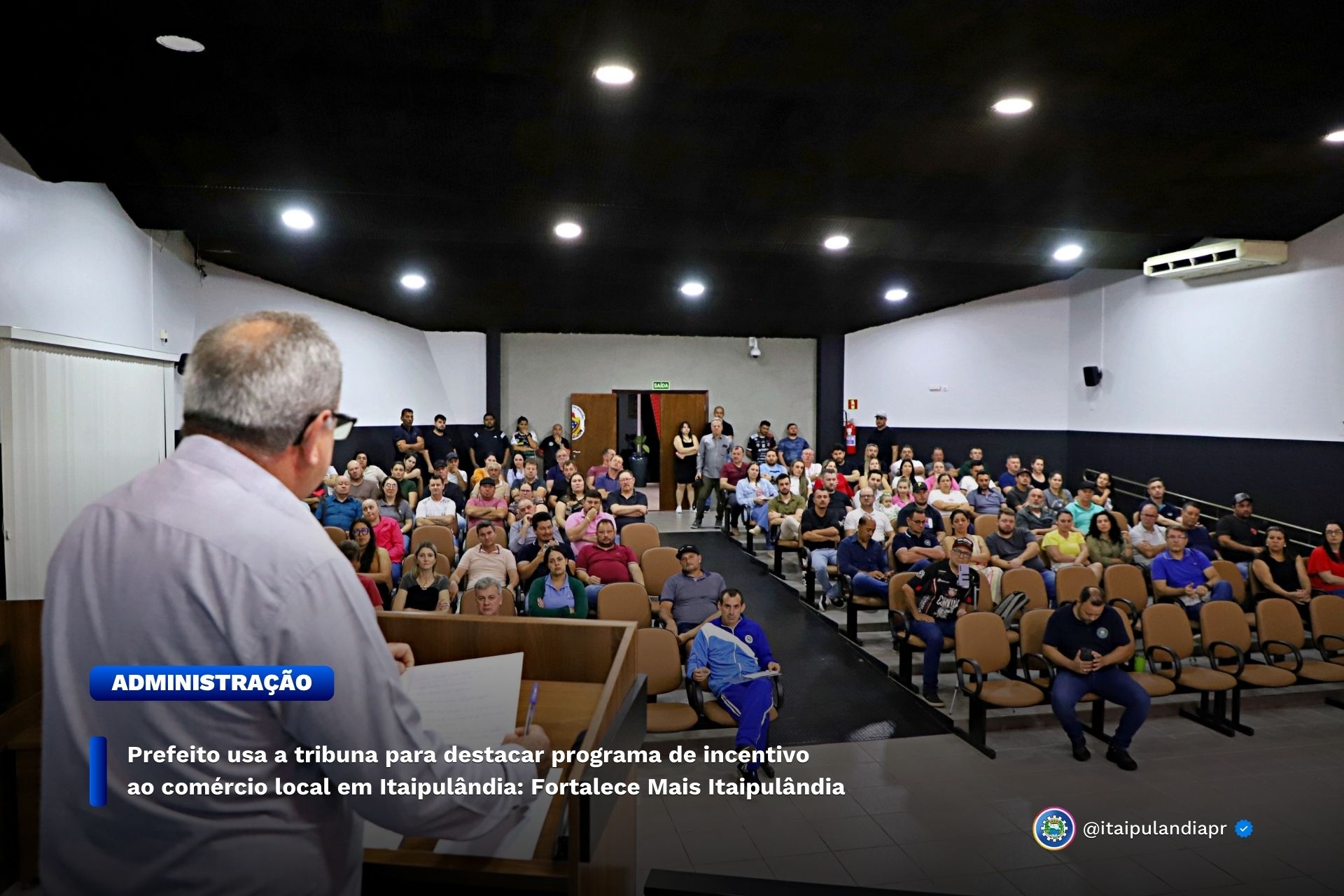 Durante a 31ª Sessão Ordinária da Câmara de Vereadores de Itaipulândia, realizada na noite de segunda-feira (15), o Prefeito Lindolfo Martins Rui utilizou a Tribuna Livre para apresentar um breve relatório das ações da gestão e destacou o programa “Fortalece Mais Itaipulândia”.