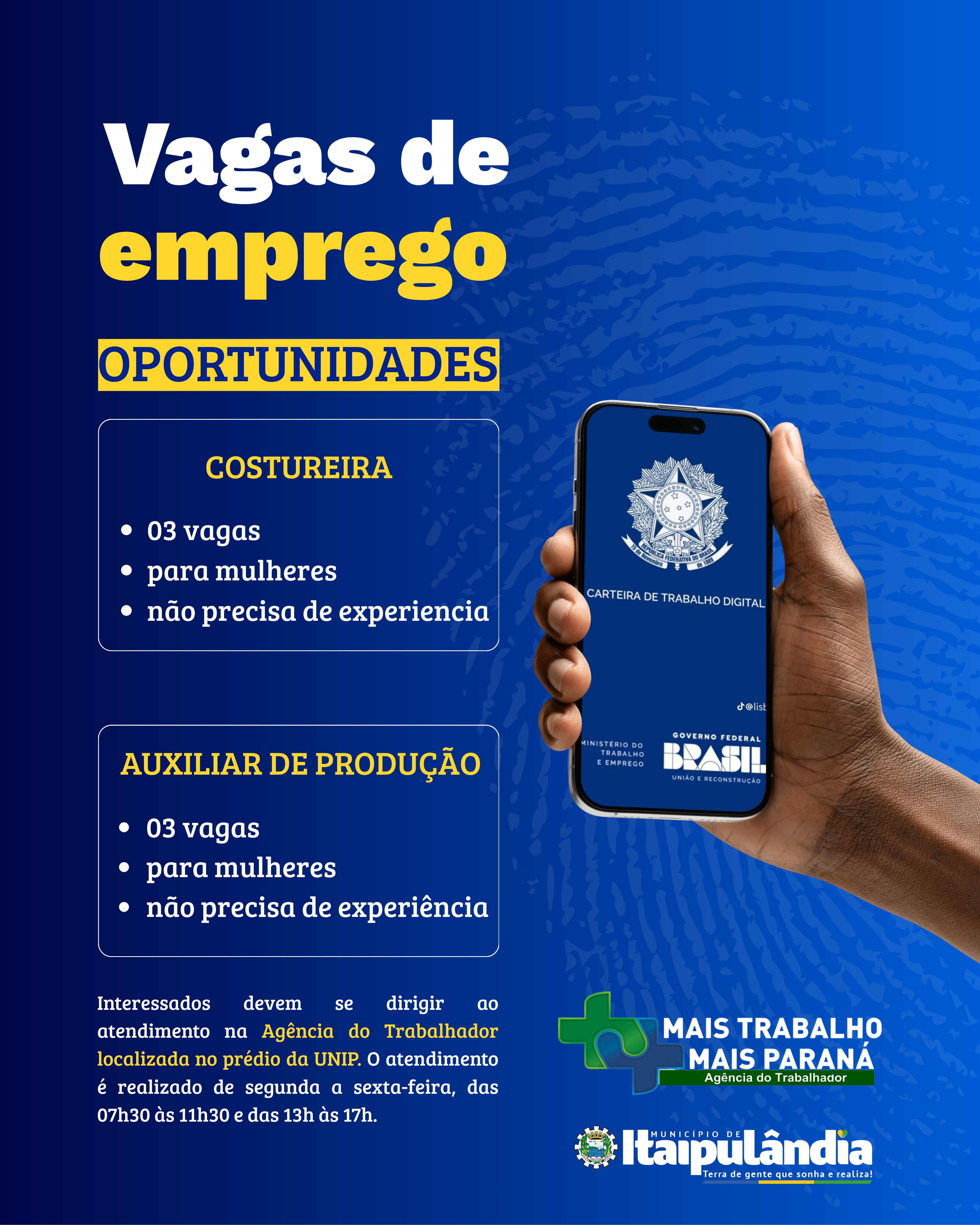 📌 Interessadas devem procurar a Agência do Trabalhador para mais informações e encaminhamento!
