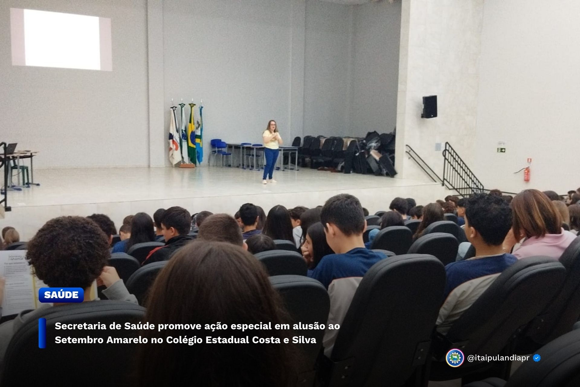 Na manhã da última terça-feira (16), a Escola Estadual Costa e Silva recebeu uma ação especial em alusão ao Setembro Amarelo, campanha nacional de prevenção ao suicídio e valorização da vida. O encontro foi promovido em parceria com a Secretaria Municipal de Saúde e teve como foco a saúde mental dos adolescentes.