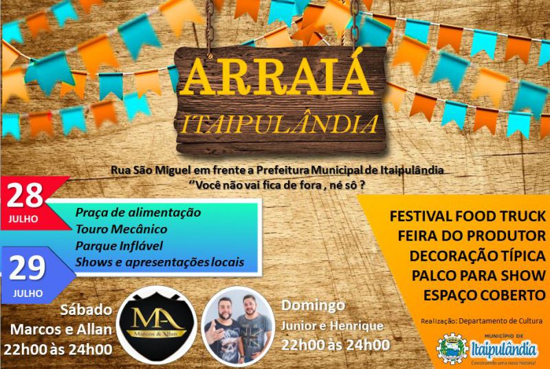 O evento acontece neste final de semana nos dias 28 e 29 de Julho, em frente ao Paço Municipal Tancredo Neves, rua São Miguel do Iguaçu.