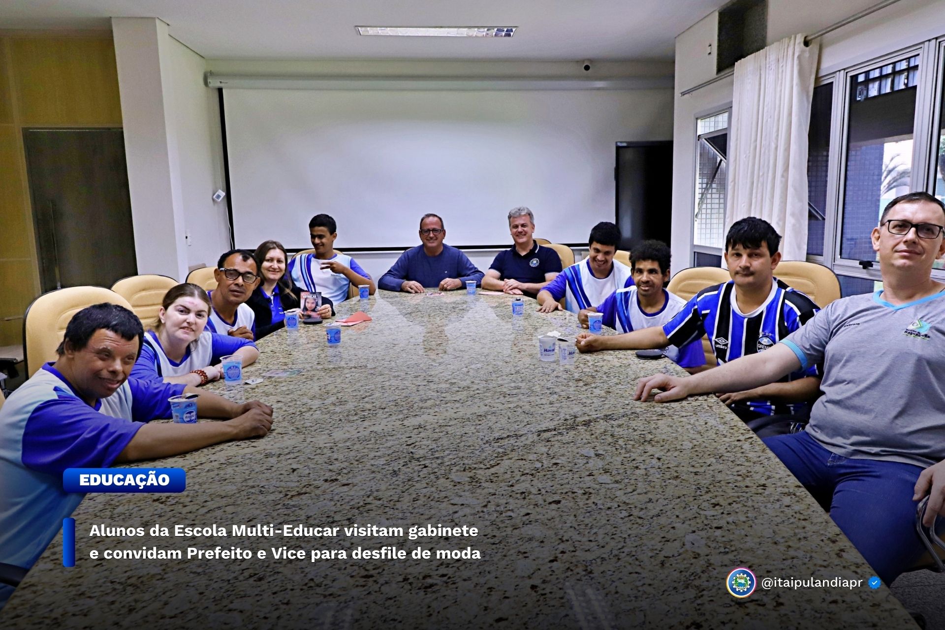 Alunos da Escola Multi-Educar visitam gabinete e convidam Prefeito e Vice para desfile de moda