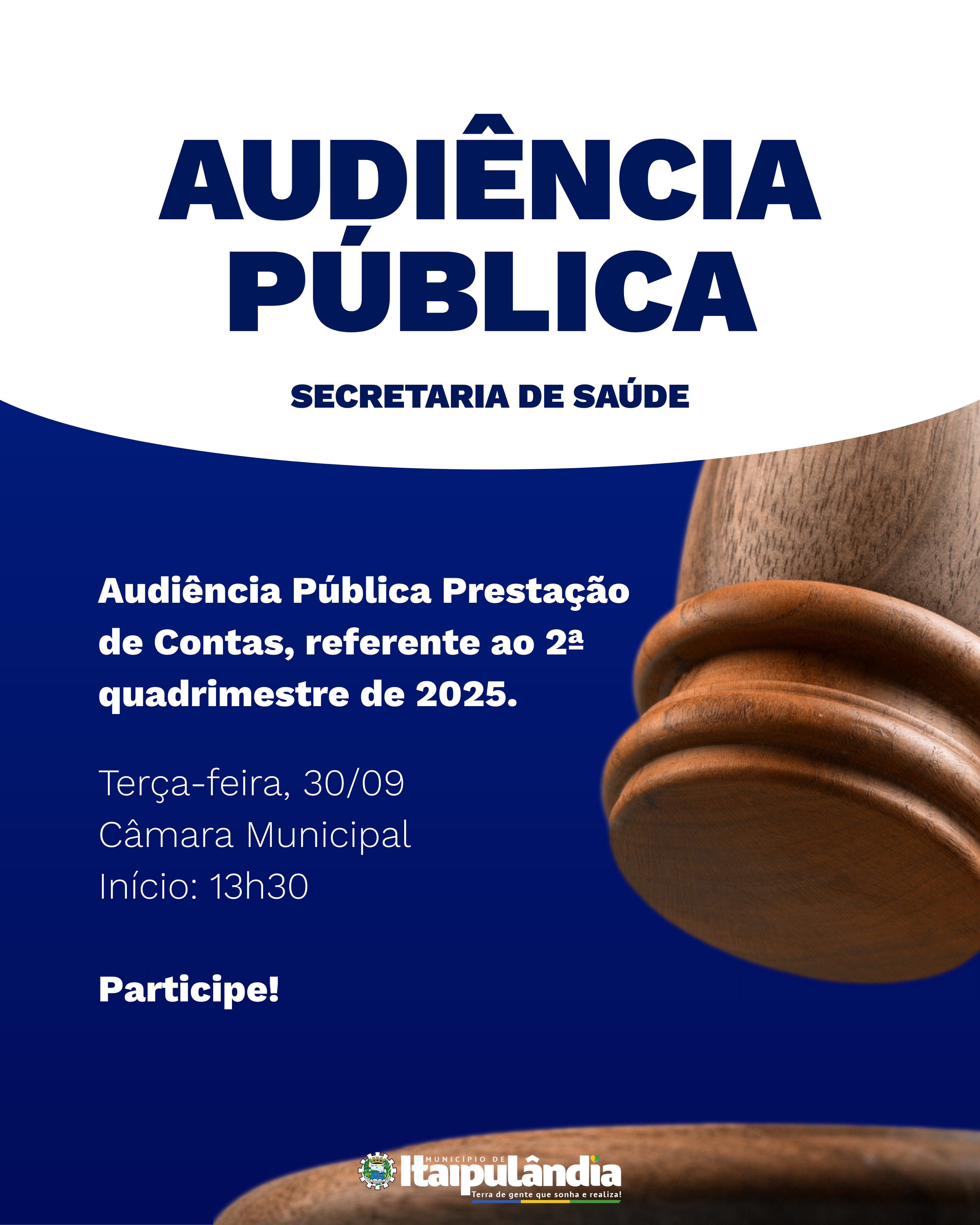 realizará amanhã, às 13h30, a Audiência Pública de Prestação de Contas referente ao 2º quadrimestre de 2025.