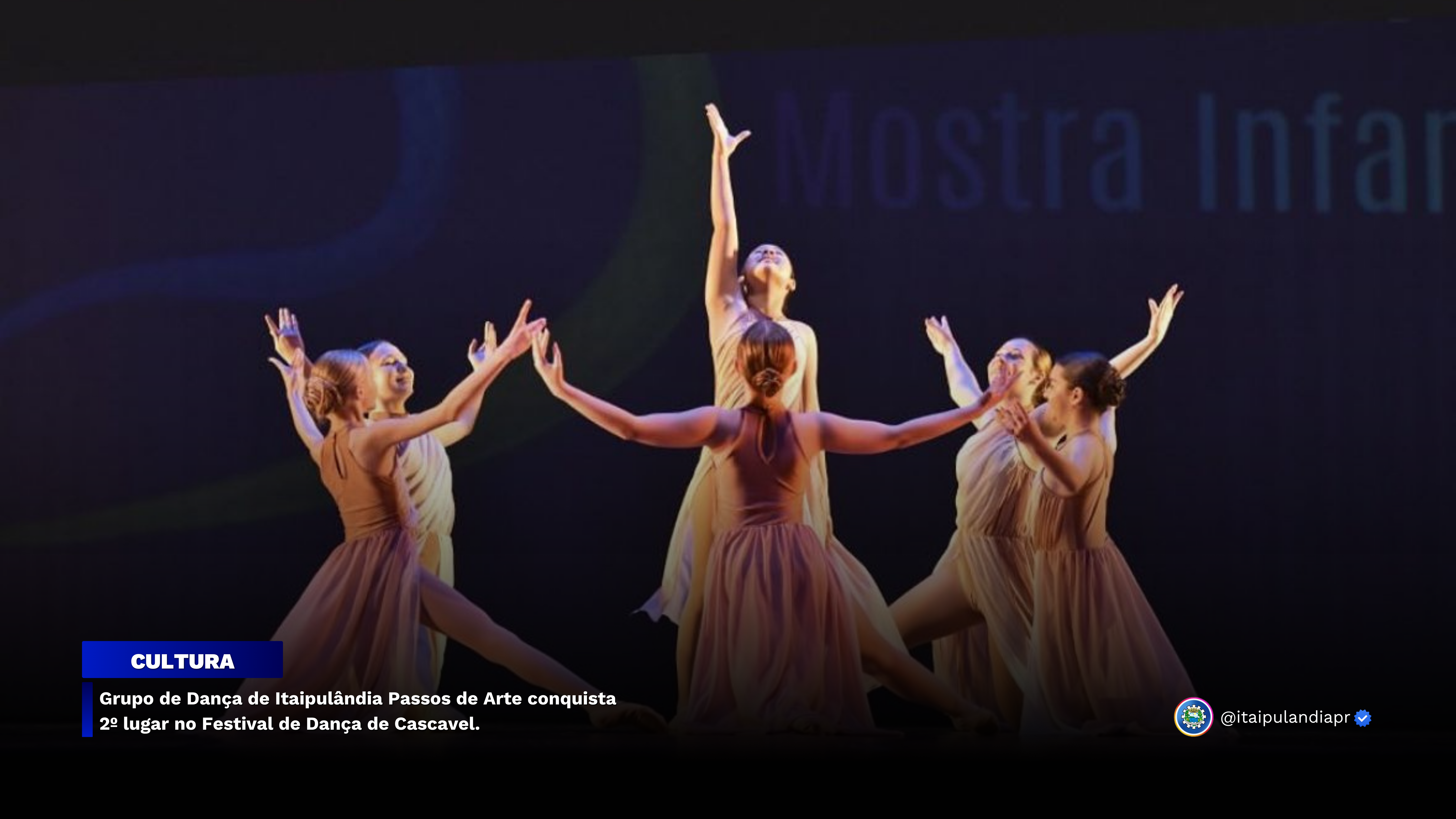 O grupo de dança Passos de Arte, de Itaipulândia, conquistou o segundo lugar na categoria Conjunto Jazz Júnior durante o Festival de Dança de Cascavel, realizado no Teatro Municipal Sefrin Filho, neste mês de setembro.