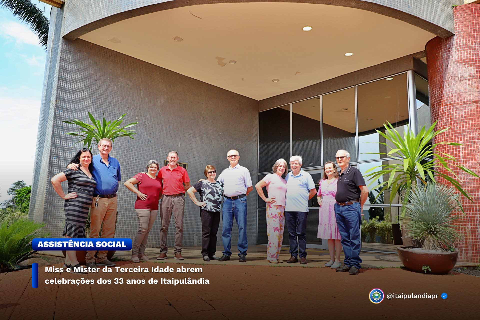 Na tarde desta segunda-feira (06), foram oficialmente apresentados os candidatos ao concurso Miss e Mister Terceira Idade de Itaipulândia. O desfile, marcado para o dia 22 de outubro às 14h, será o evento de abertura das comemorações pelos 33 anos de emancipação do município. Os participantes prometem encantar o público com charme, elegância e alegria.