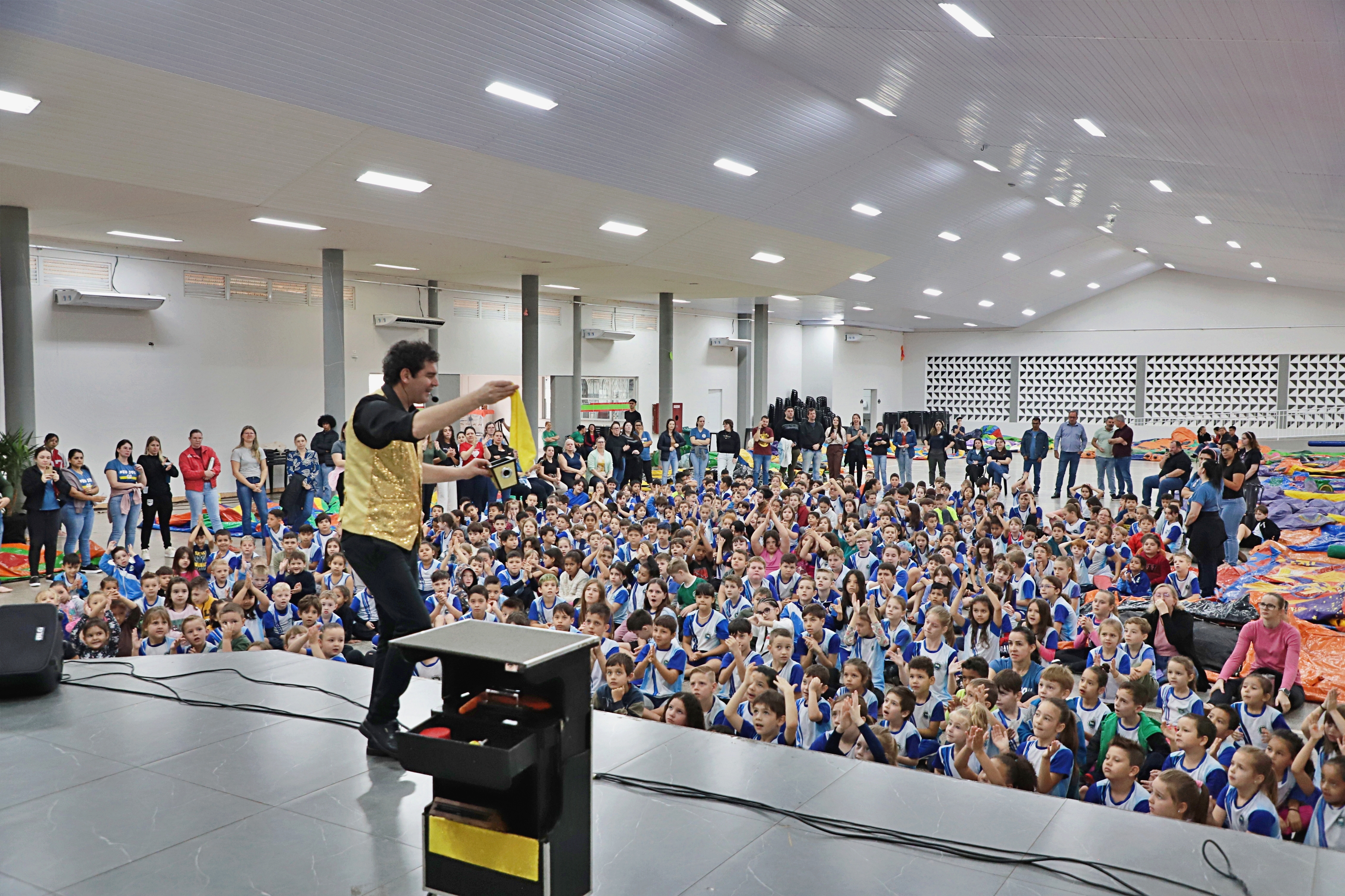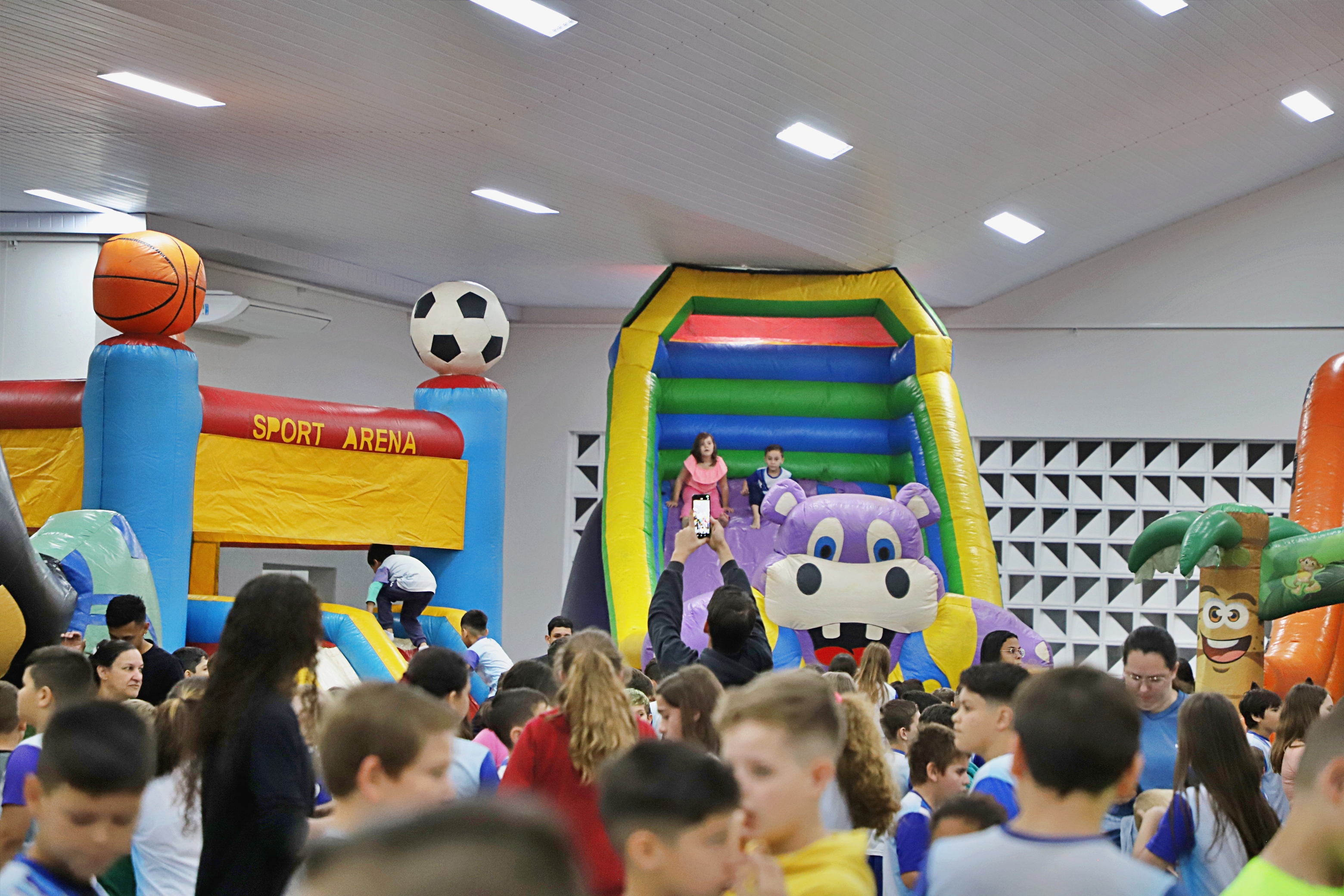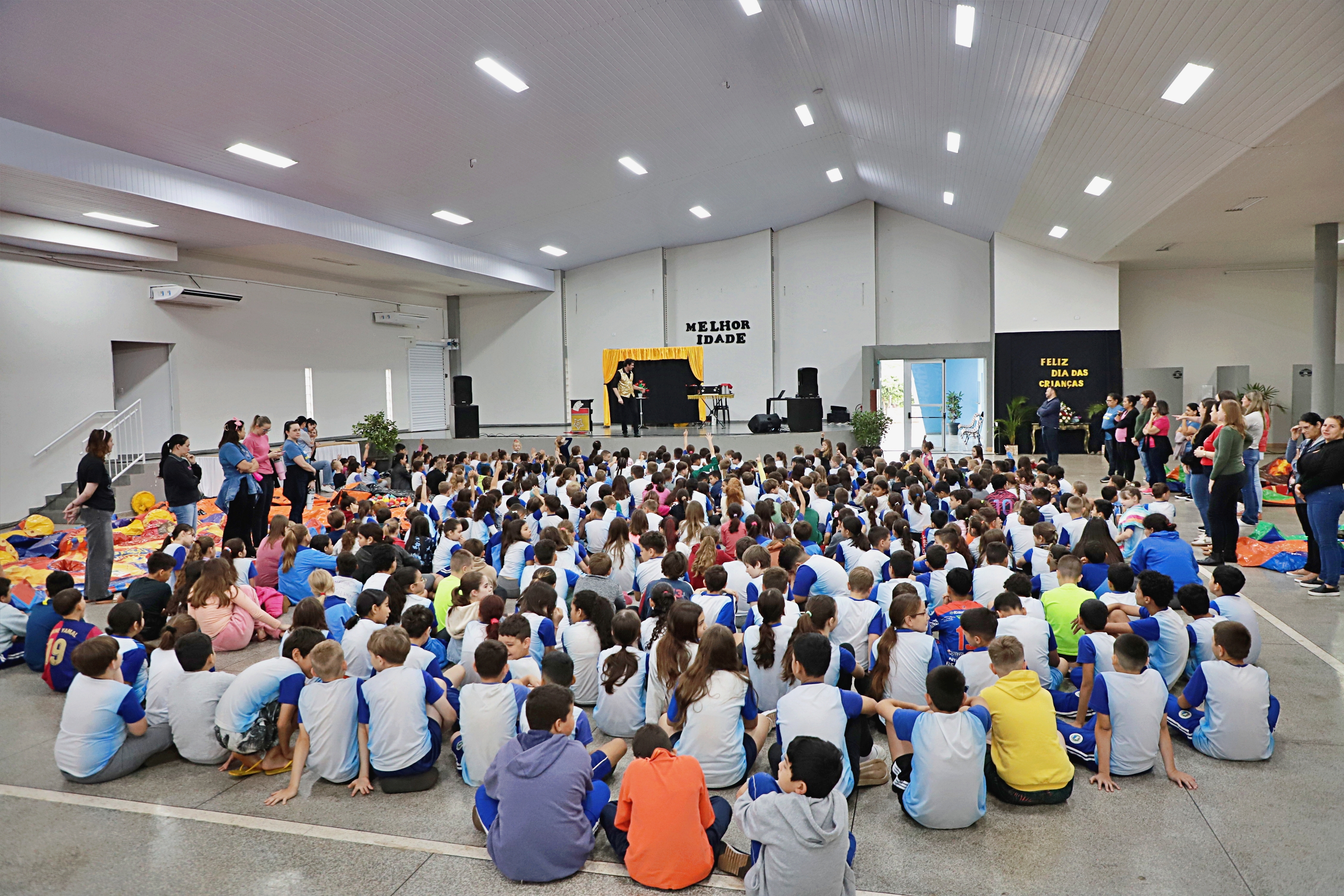 A programação seguiu até o dia 09 de outubro, com brincadeiras nos brinquedos infláveis e muita animação. Para garantir a participação de todos, as crianças dos CMEIs aproveitaram os brinquedos em suas próprias unidades, enquanto os alunos das escolas municipais participaram das atividades no Centro de Eventos, onde também puderam se encantar com um show de mágica preparado especialmente para eles.