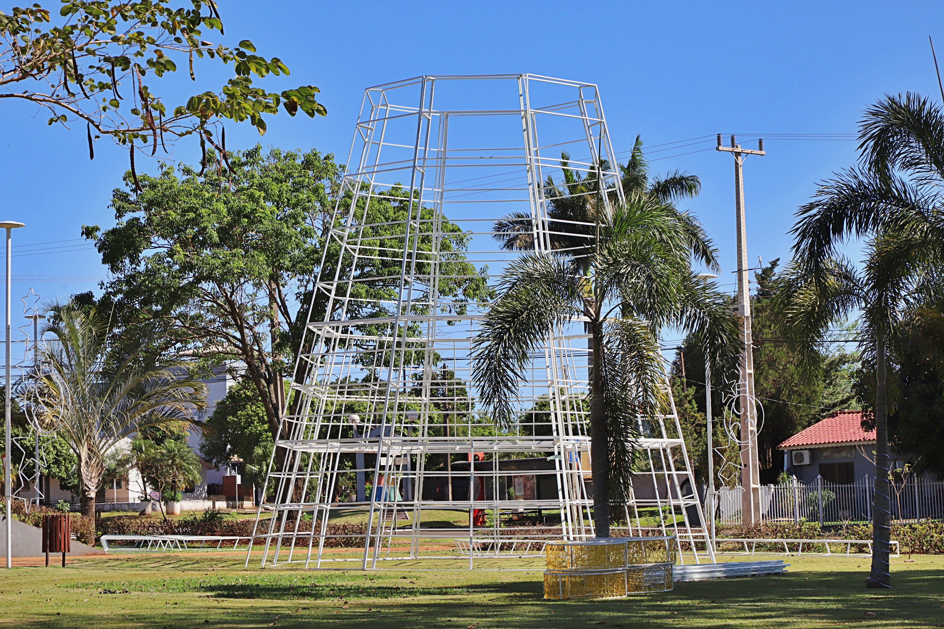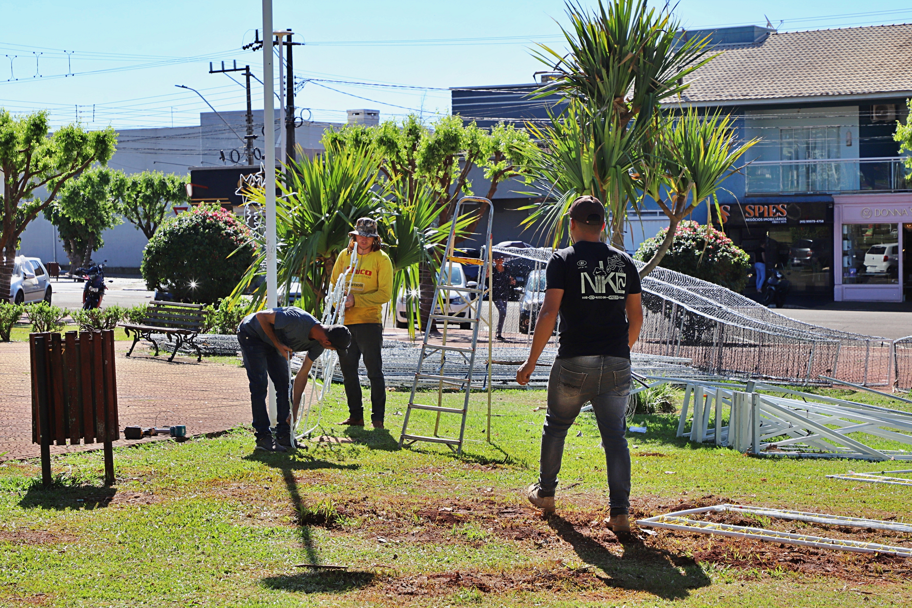 Clima natalino invade Itaipulândia com as primeiras instalações das decorações do Natal Iluminado.