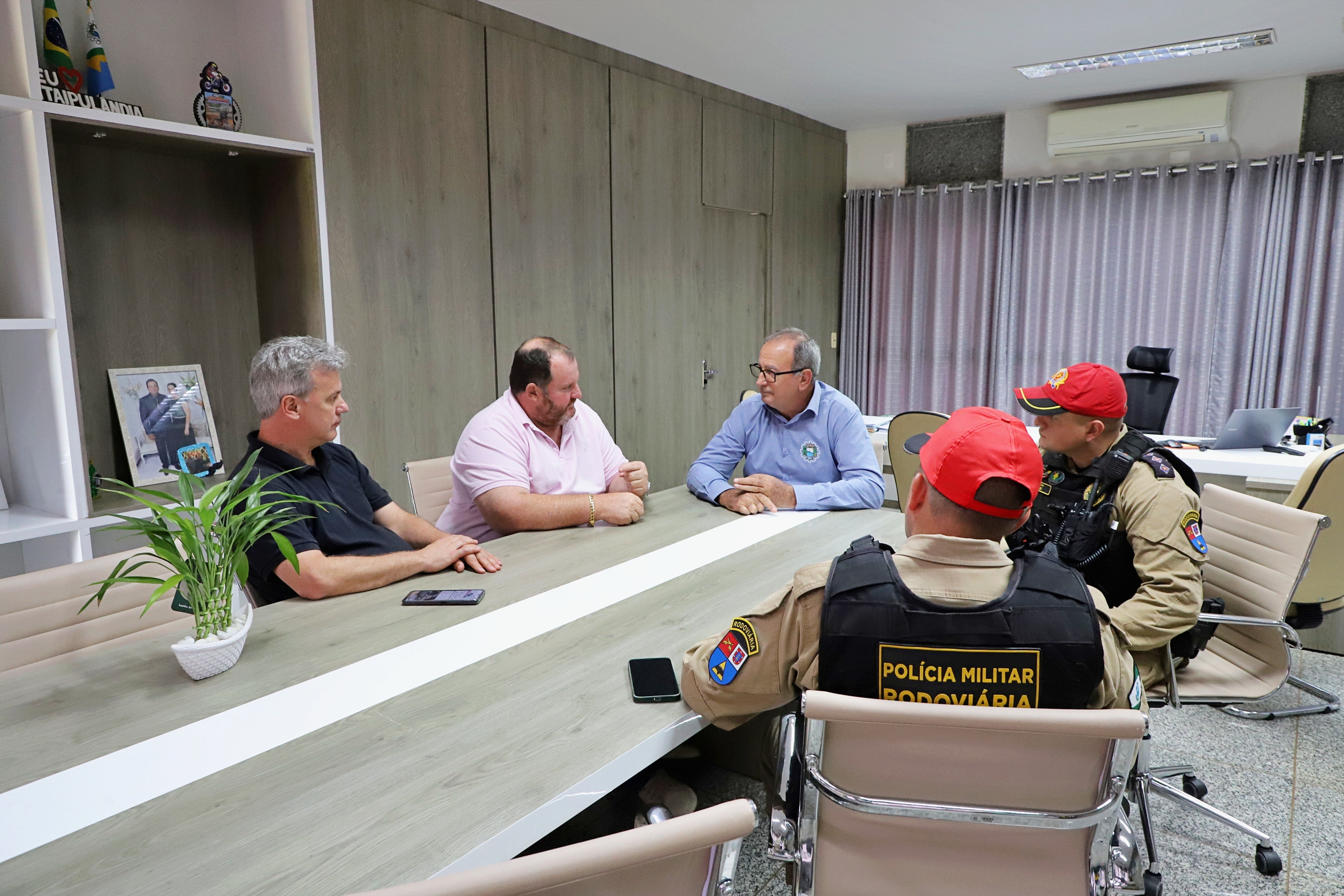 Autoridades recebem representantes da PolÃcia Militar Rodoviária em importante reunião no gabinete.