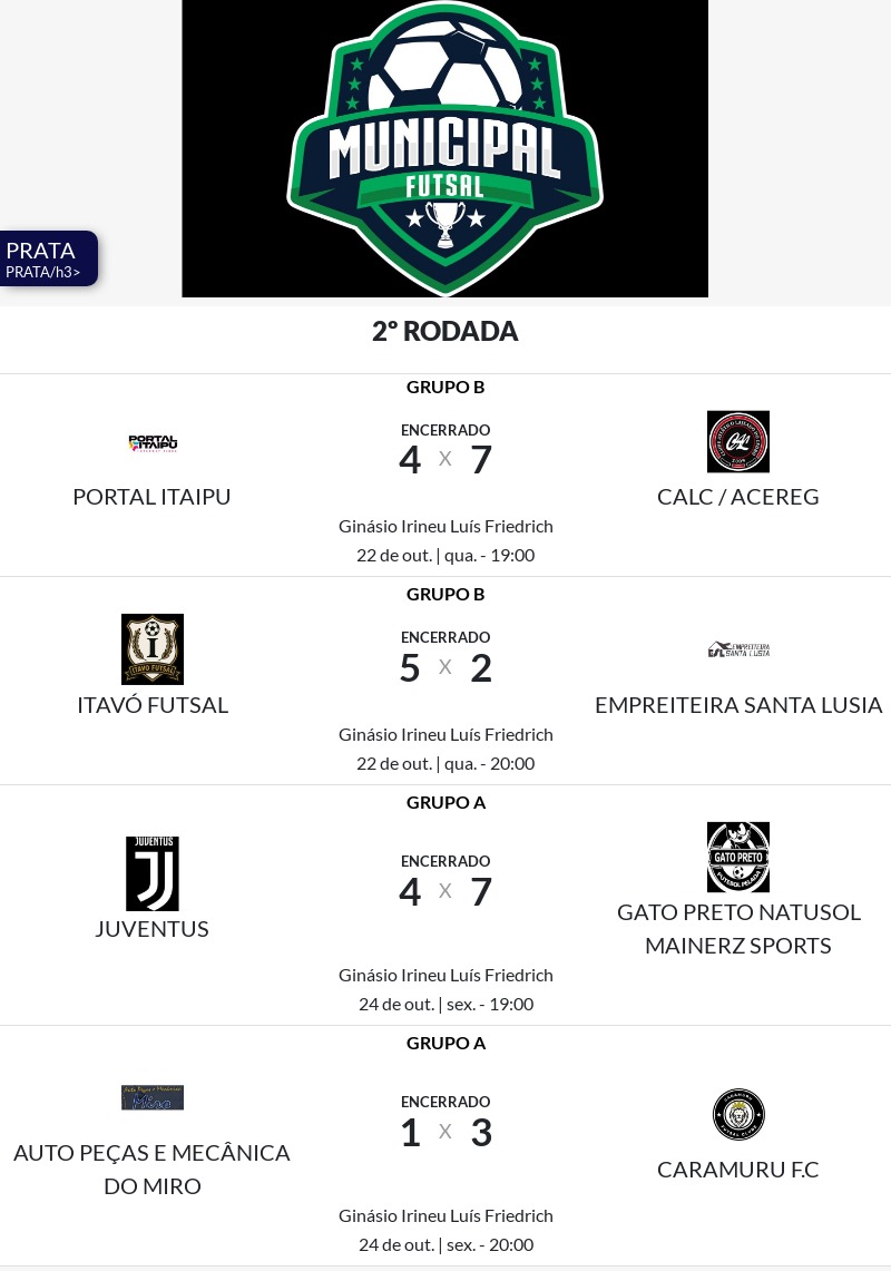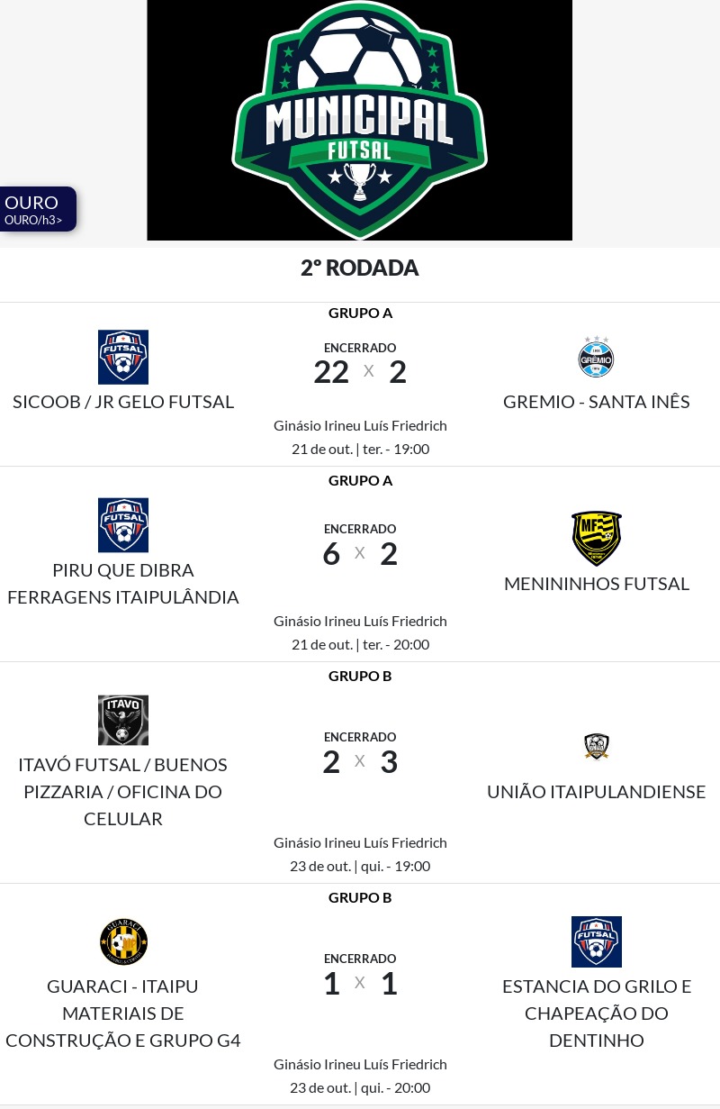 As disputas da segunda rodada das séries ouro, prata e bronze do XXXI Campeonato Municipal de Futsal agitaram o Ginásio de Esportes Irineu Luiz Friedrich, com jogos intensos, placares apertados e grande participação do público que acompanhou cada lance com entusiasmo.