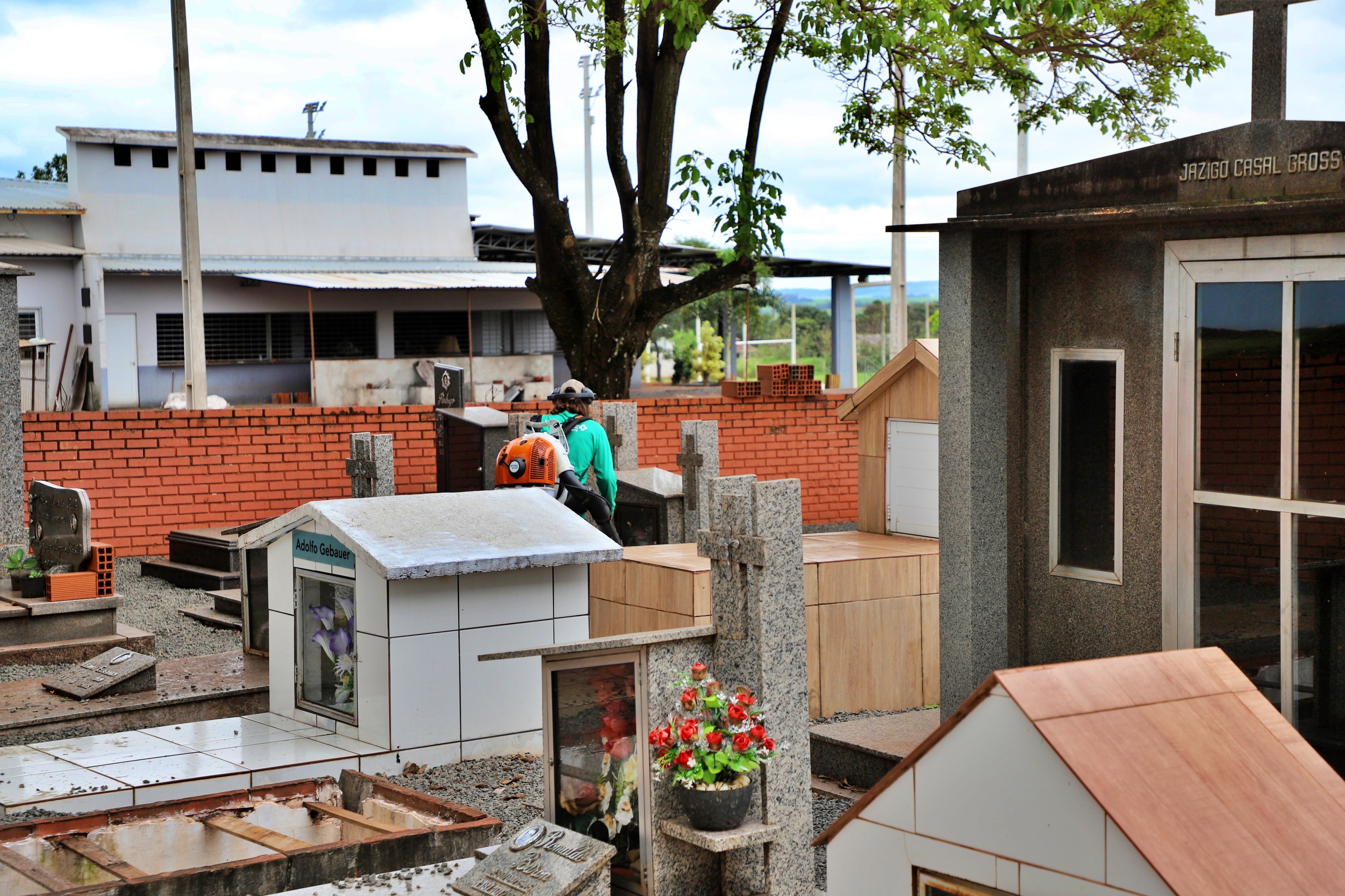 A administração de Itaipulândia intensificou nesta semana os serviços de manutenção nos cemitérios do município, em preparação para o Dia de Finados, celebrado em 2 de novembro. A ação, realizada em parceria com a Secretaria de Obras e as sub prefeituras das comunidades de Santa Inês, São José do Itavo e do Bairro Caramuru, Buriti e Esquina Gaúcha realiza pintura de meios-fios, manutenção de calçadas com paver, limpeza das áreas comuns e cuidados com o gramado.