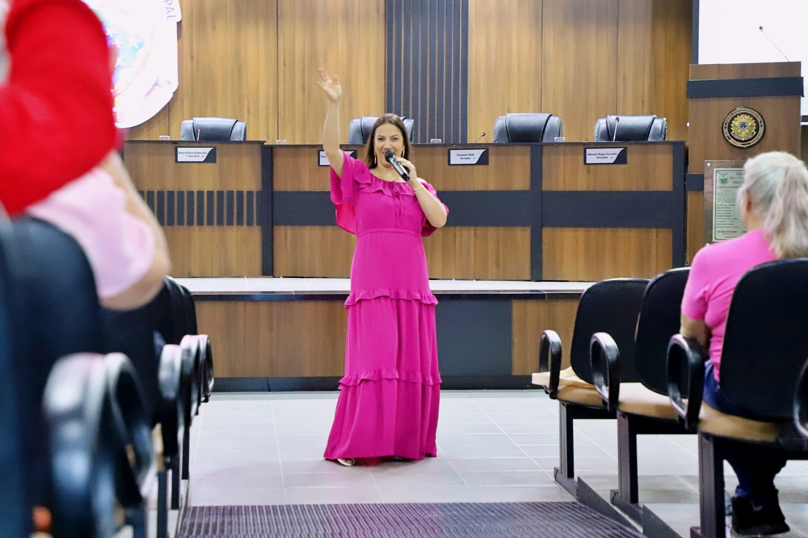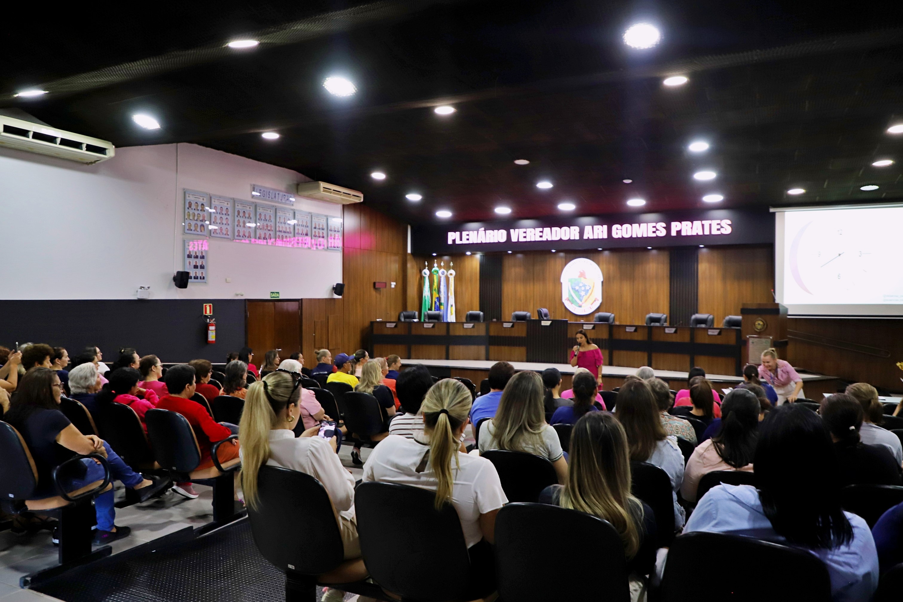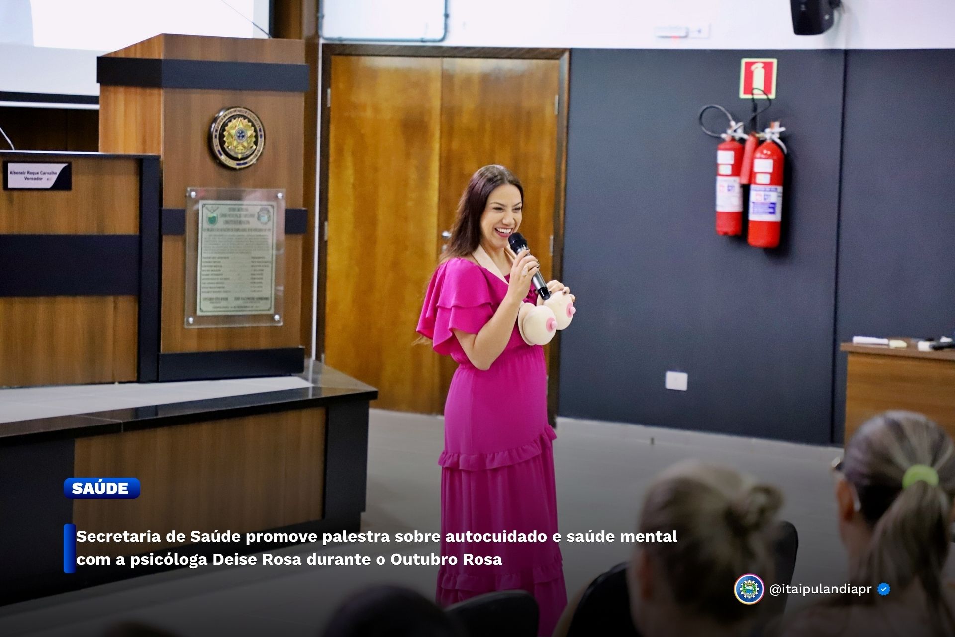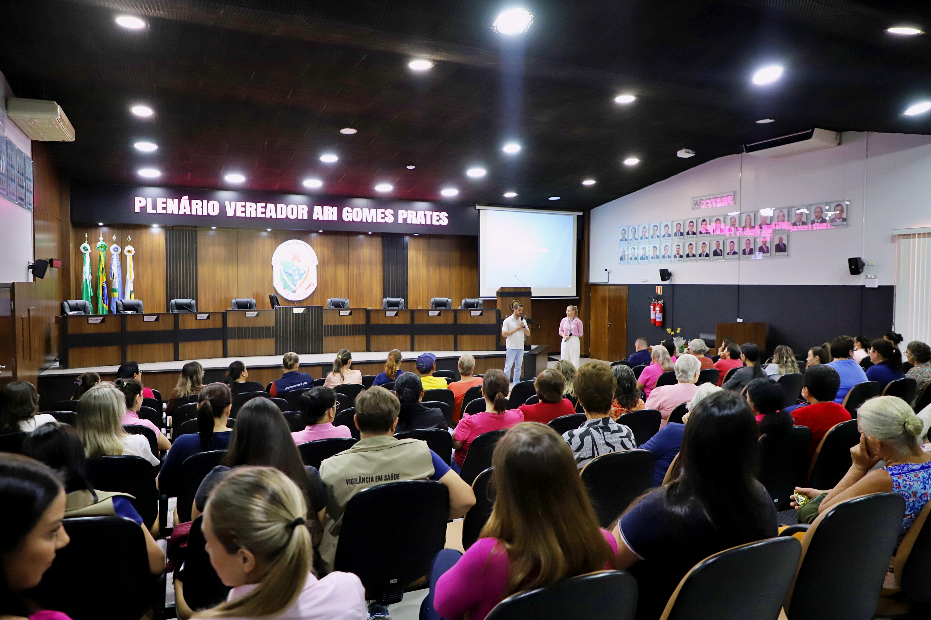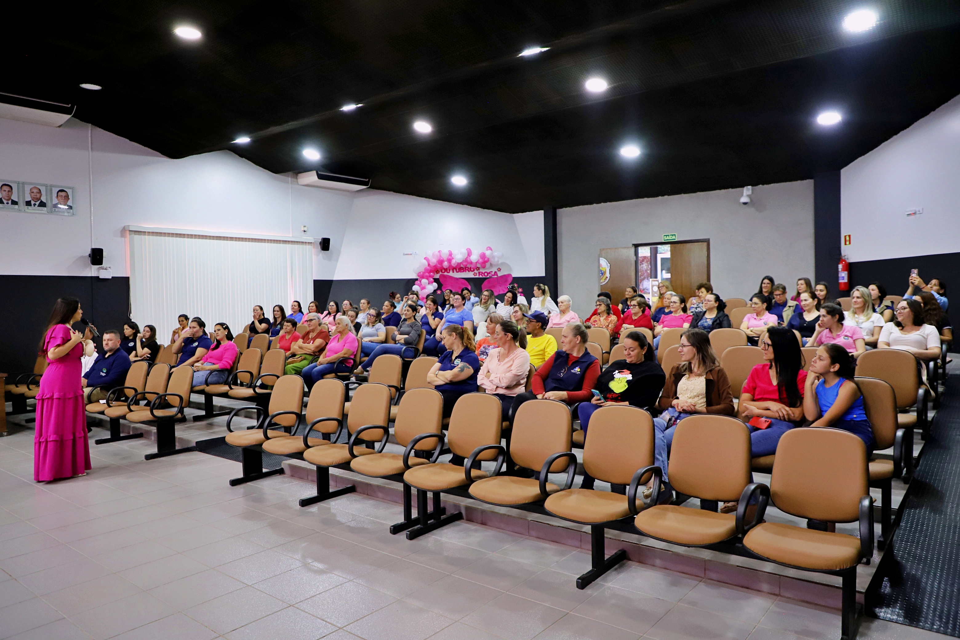 Secretaria de Saúde promove palestra sobre autocuidado e saúde mental com a psicóloga Deise Rosa durante o Outubro Rosa.