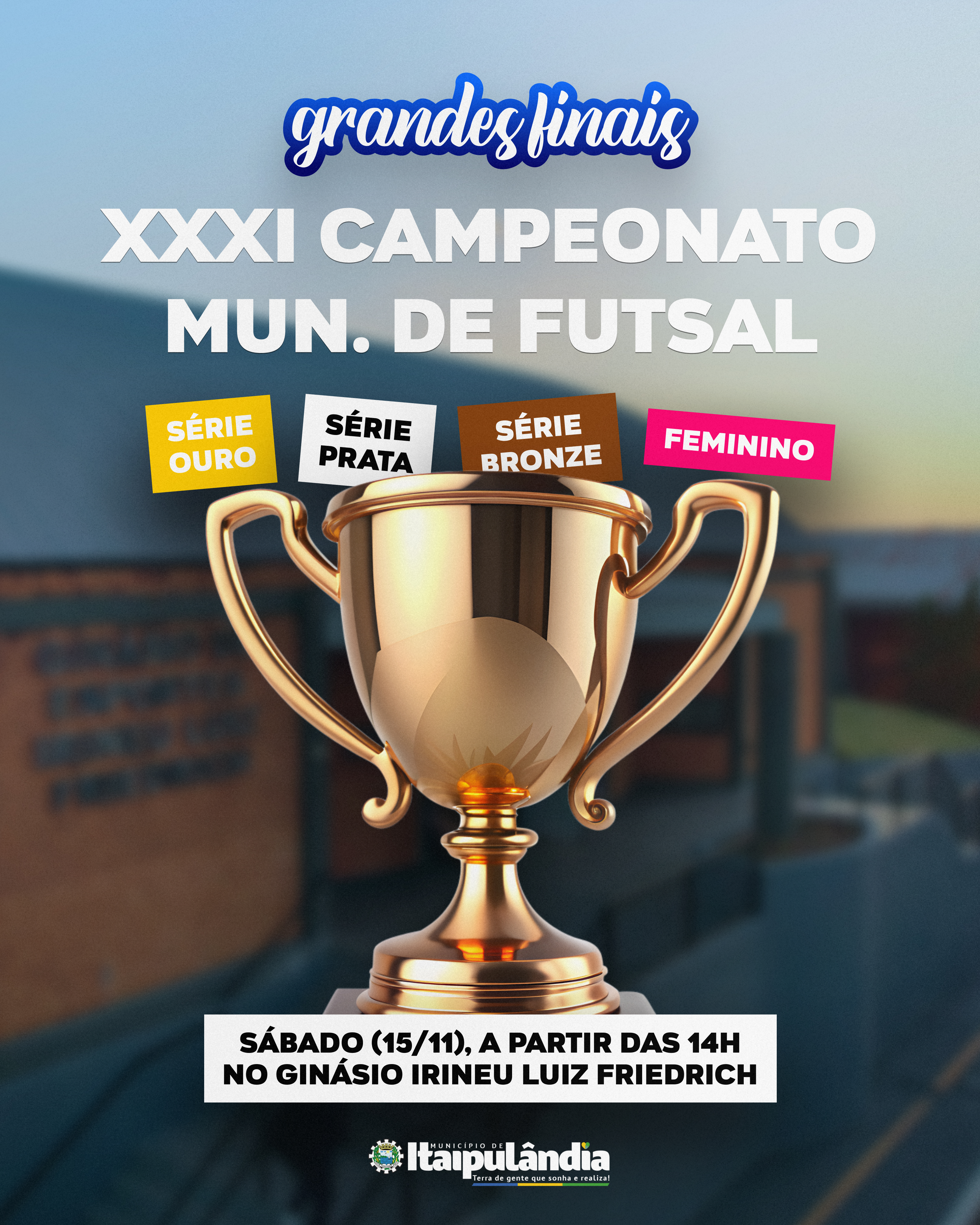 Neste sábado (15), o Ginásio Irineu Luiz Friedrich será palco das disputas de terceiro lugar e das grandes finais das séries ouro, prata, bronze e da categoria feminina do XXXI Campeonato Municipal de Futsal.