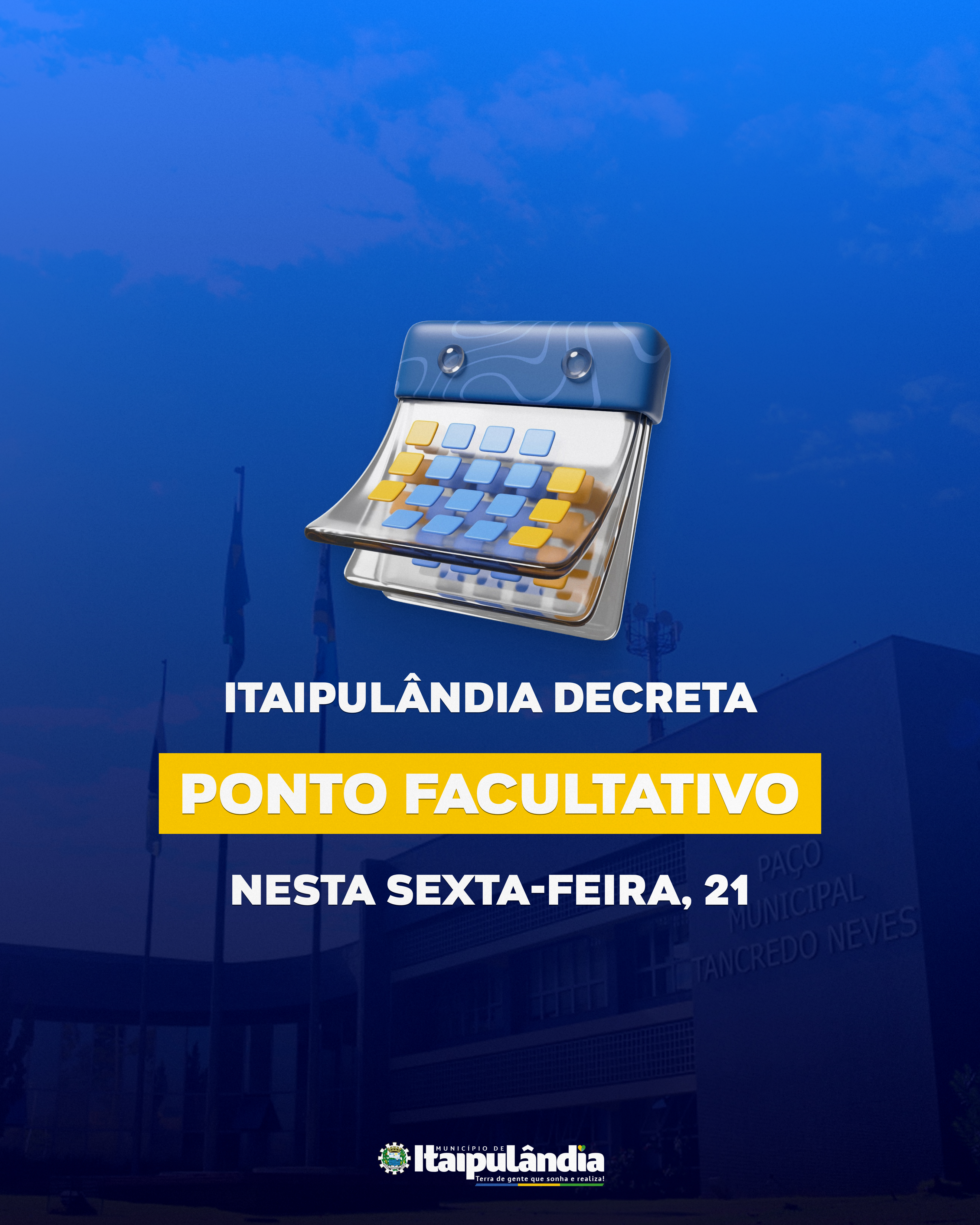A Administração Municipal estabelece ponto facultativo nas repartições públicas do Poder Executivo na próxima sexta-feira (21), em razão do feriado nacional de 20 de novembro, data em que se celebra o Dia Nacional de Zumbi e da Consciência Negra.