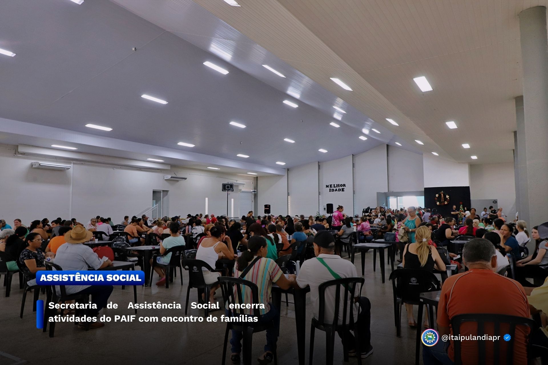 A Secretaria de Assistência Social realizou, nesta terça-feira (25), o encerramento oficial das atividades do Programa PAIF no Centro de Eventos Benjamim Sabino Rigo. A iniciativa reuniu famílias atendidas pelo programa em uma tarde dedicada ao fortalecimento dos vínculos familiares e à orientação sobre serviços e direitos garantidos pela rede municipal.