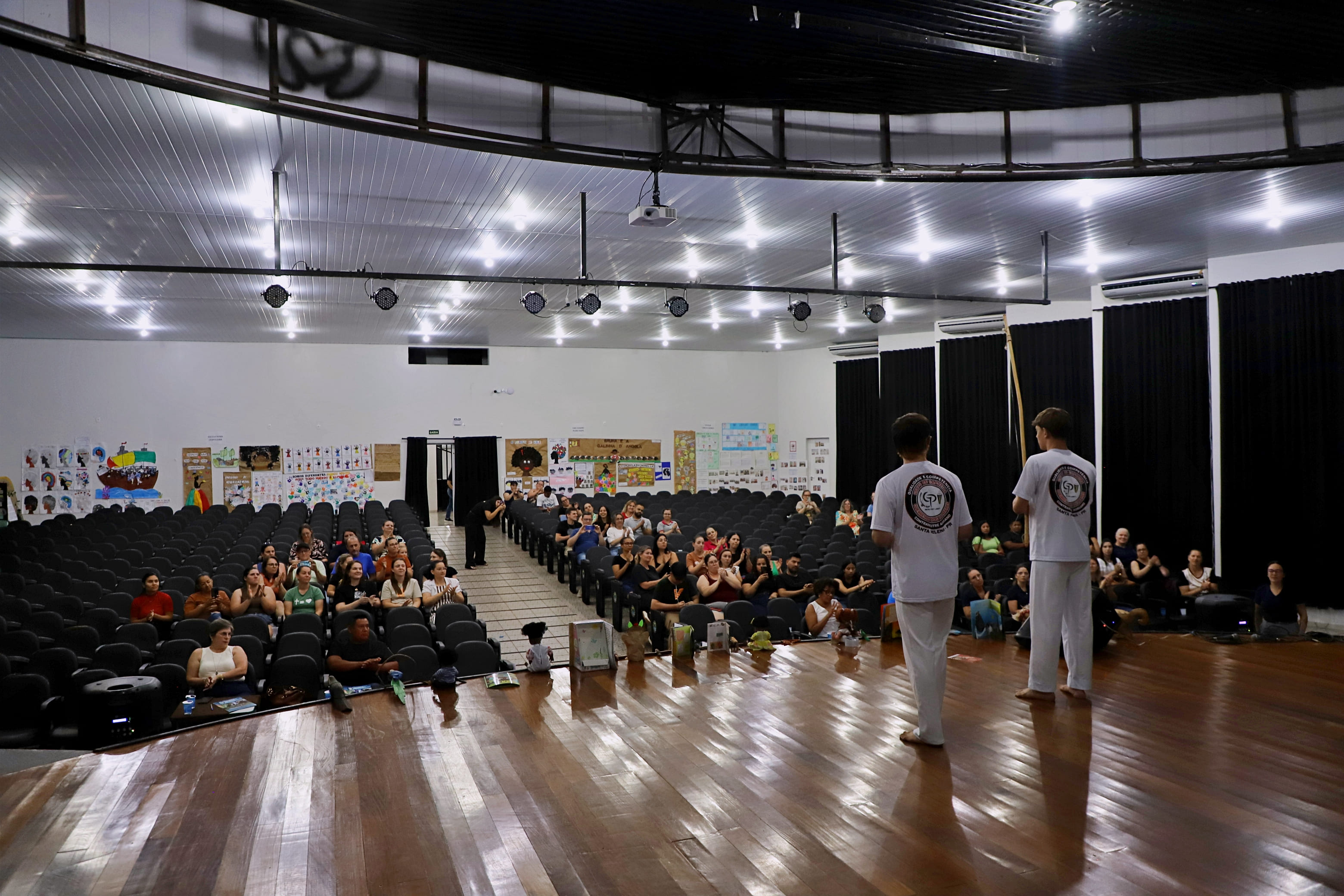 Na referida noite, o público acompanhou nove apresentações de professores, que compartilharam práticas pedagógicas desenvolvidas a partir da temática “História e Cultura Afro-Brasileira e Indígena”, três apresentações culturais, de capoeira (pelos alunos do Centro de Treinamento de Capoeira do município de Santa Helena), danças culturais (pela Comunidade Indígena Aty Mirim) e apresentação de Viola e Violão (pelo professor Claudio Furtado), com músicas alusivas à temática do evento.