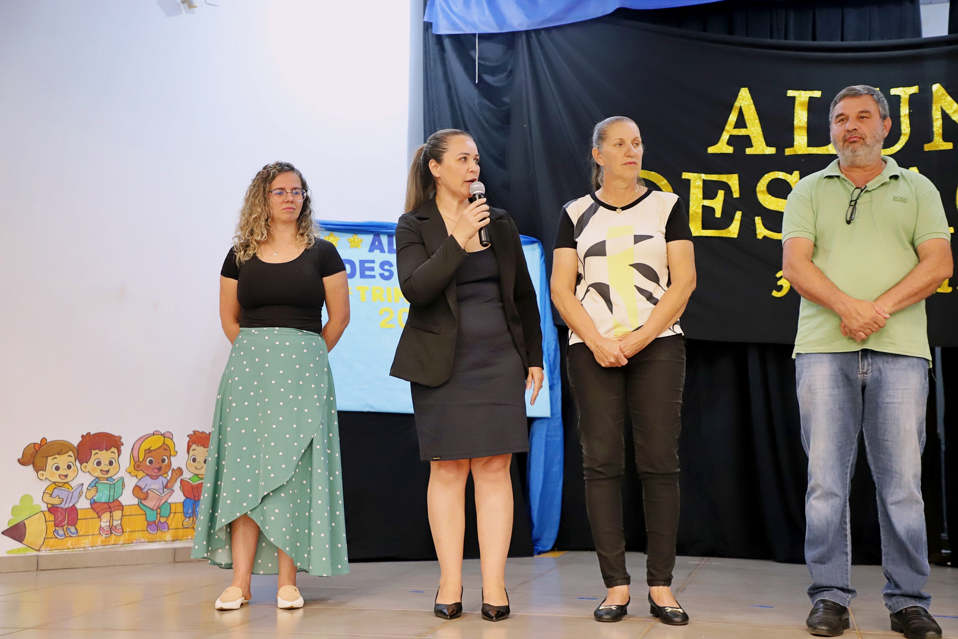 A cerimônia também registrou um agradecimento especial aos diretores, coordenadores e professores, cuja dedicação diária, apoio pedagógico e compromisso com a qualidade do ensino são fundamentais para que cada ação e cada resultado positivo se concretizem nas escolas.