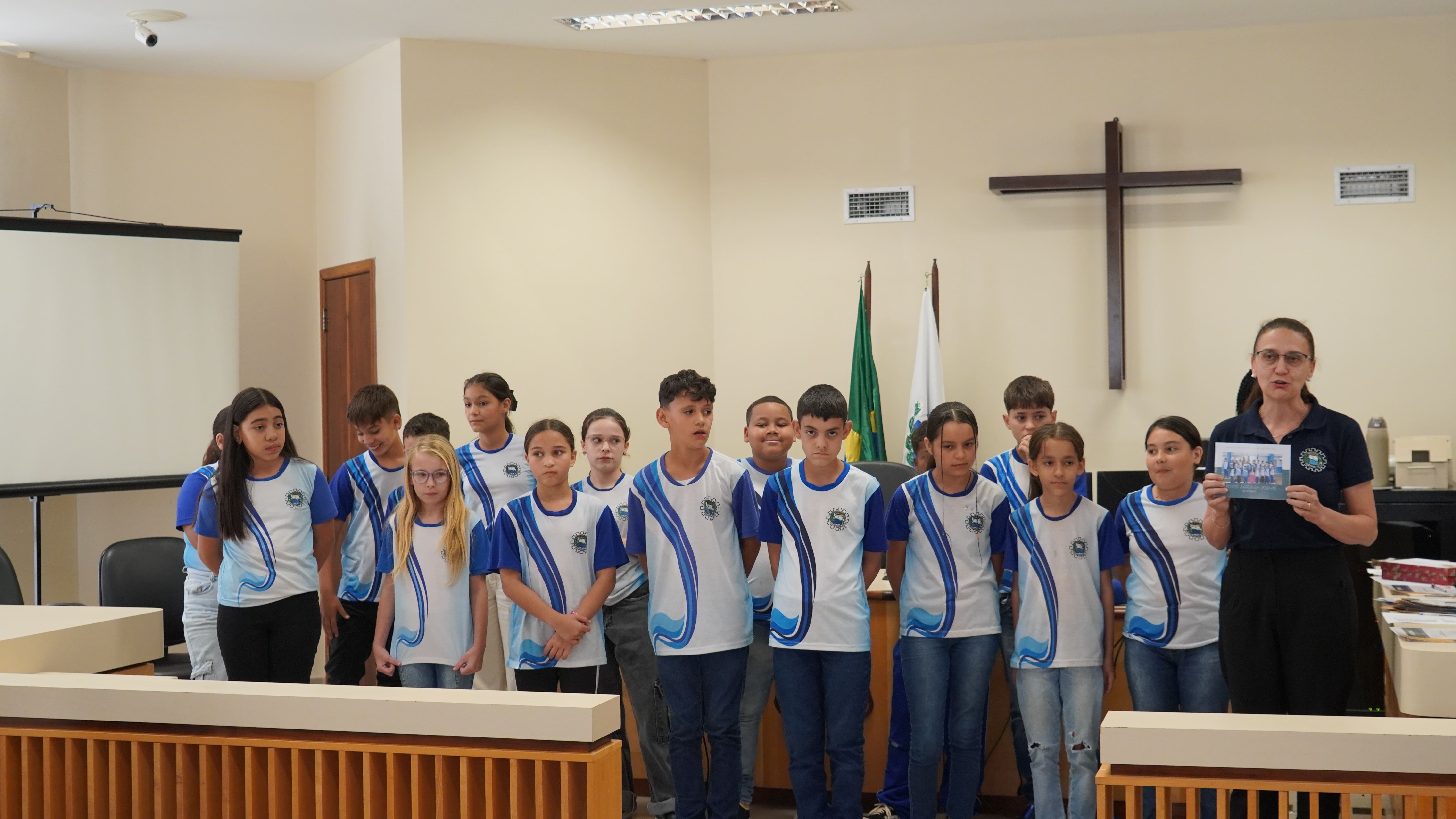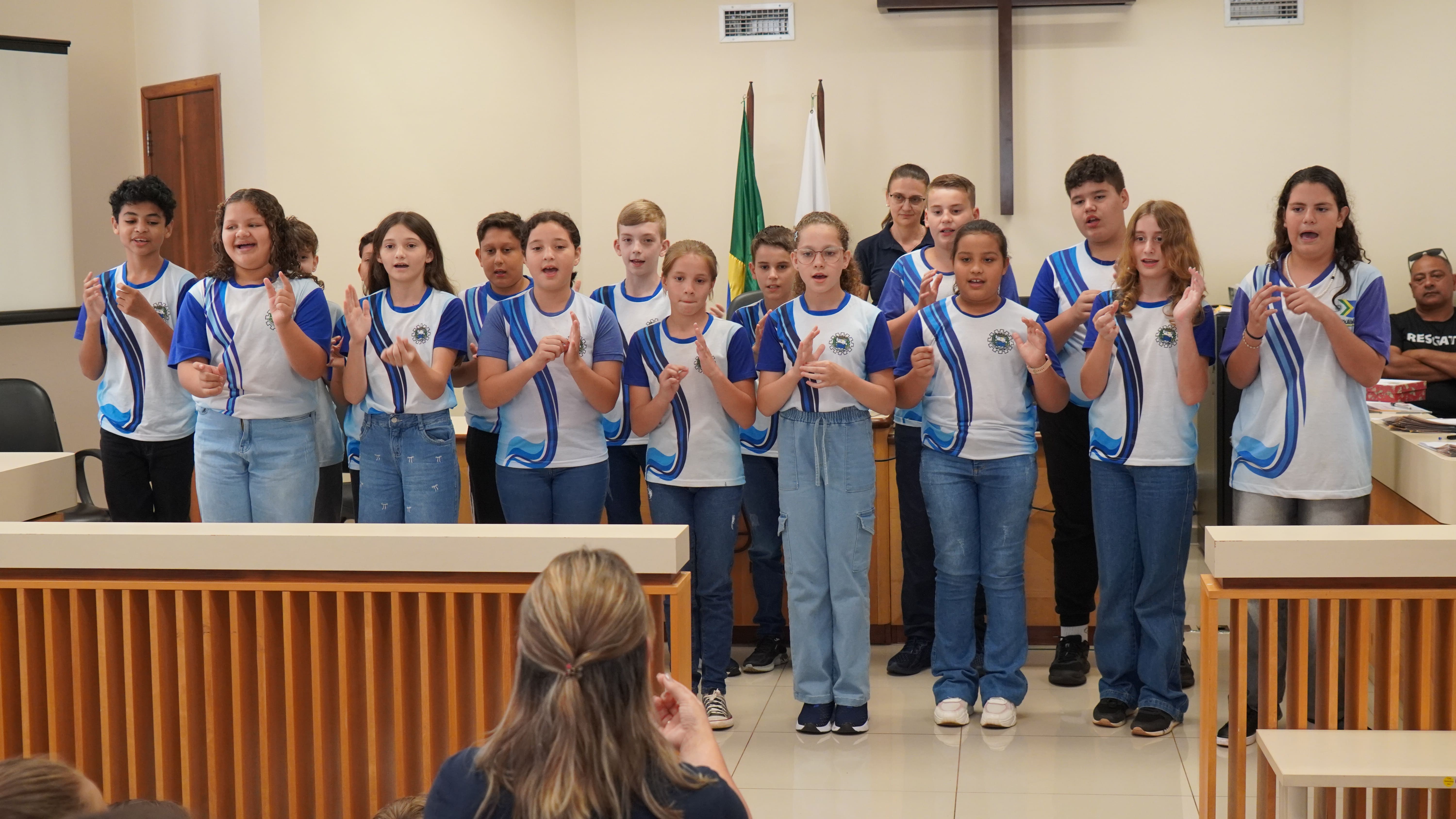 Itaipulândia encerra projeto “Justiça e Cidadania Também se Aprende na Escola” com apresentações dos alunos do 5º ano.