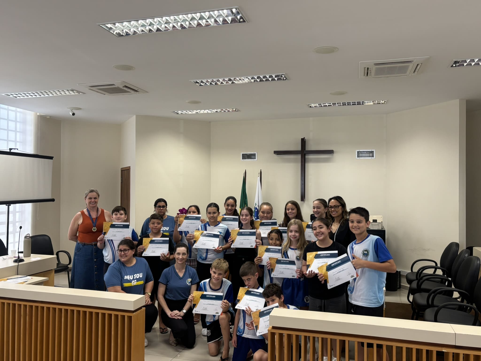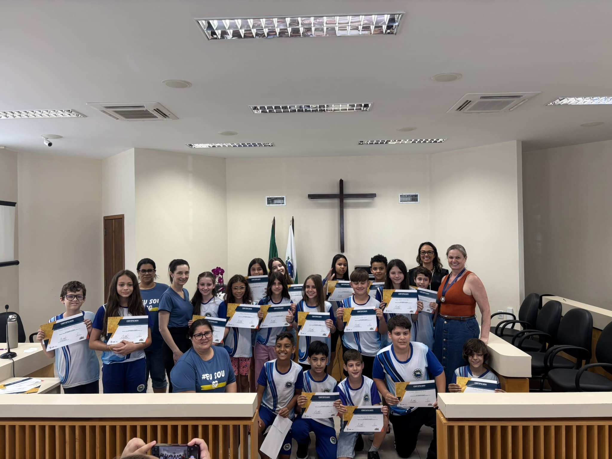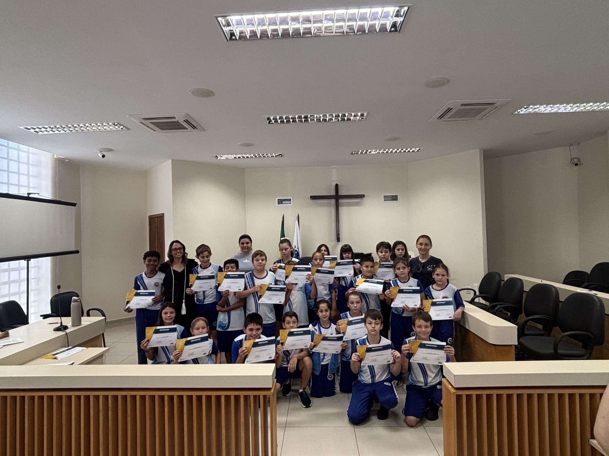 Na última quinta-feira (04), foi realizado o encerramento do projeto “Justiça e Cidadania Também se Aprende na Escola”, desenvolvido pelo Fórum da Comarca de São Miguel do Iguaçu com as turmas de 5º ano das escolas Carlos Gomes, Dona Leopoldina, João Lorini e Rondônia. A iniciativa, promovida ao longo de outubro e novembro, aproximou o Poder Judiciário das escolas municipais por meio de atividades pedagógicas e diálogos formativos.