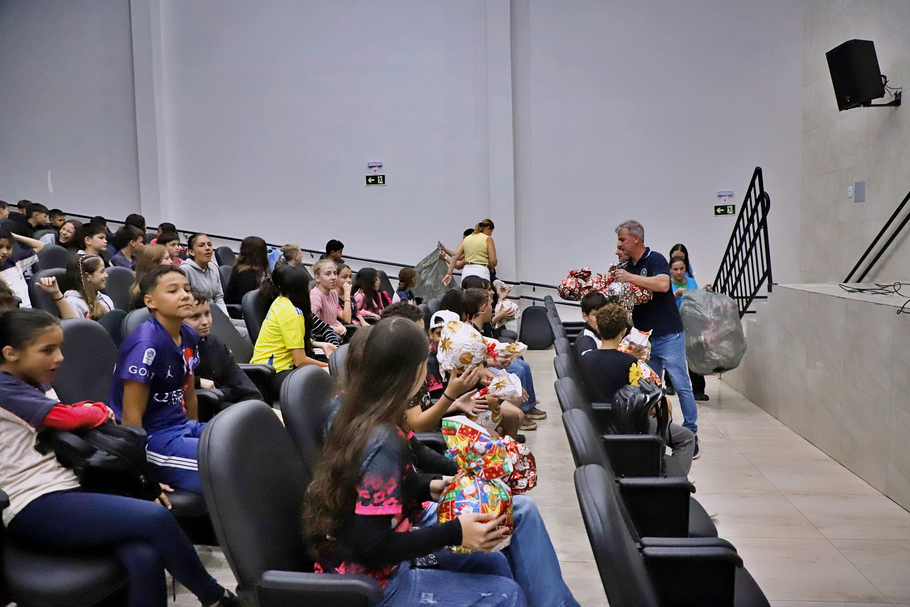 Encerrando o ano com alegria e espírito natalino, a Administração Municipal, juntamente com o PROVOPAR Municipal, realizou a entrega de brinquedos para os alunos das redes municipal e estadual de ensino. A ação contemplou todos os alunos das escolas municipais, dos Centros Municipais de Educação Infantil (CMEIs), os estudantes dos 6º anos das escolas estaduais e os alunos da Escola Indígena Arandu Renda.