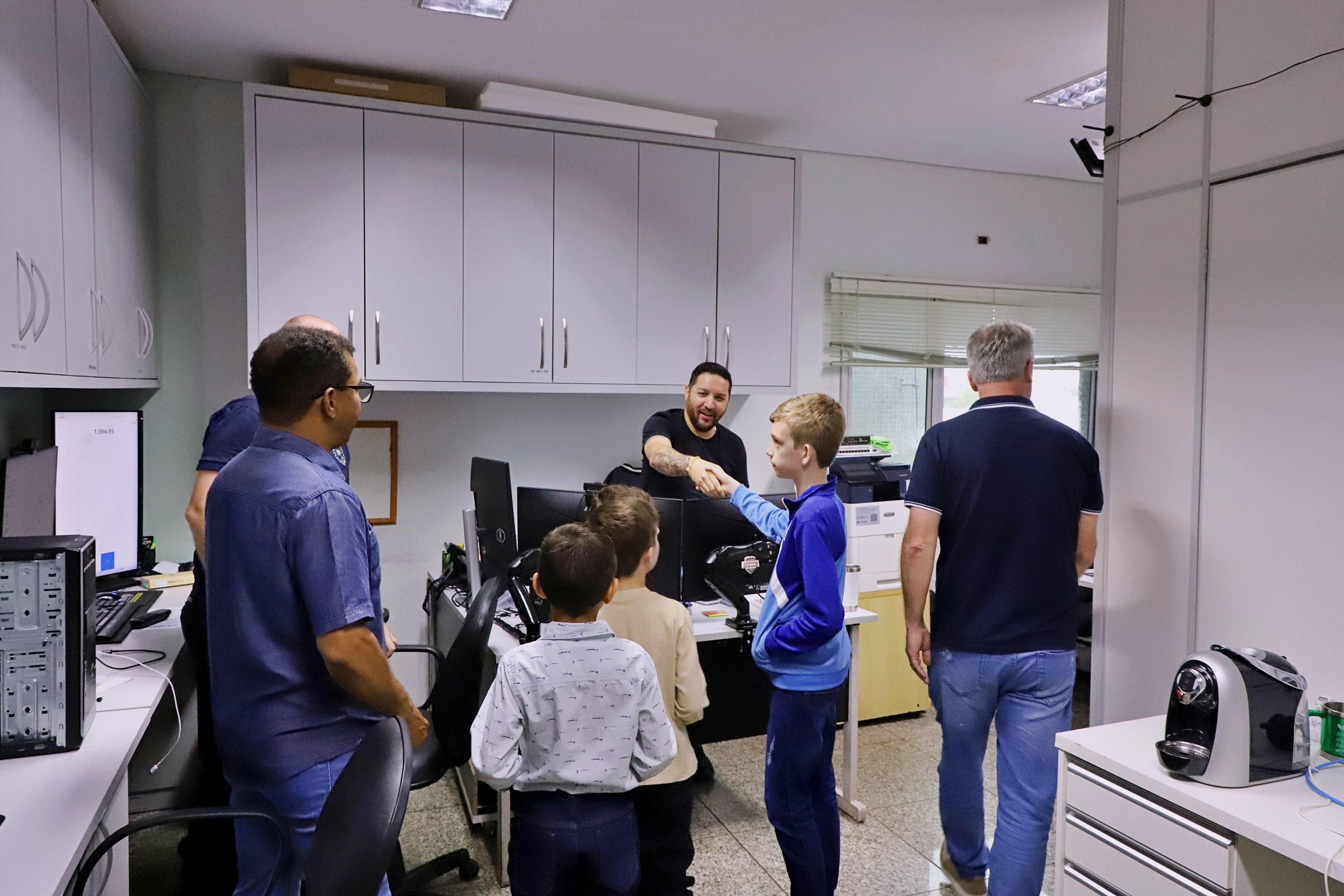 Os alunos também participaram de um lanche, seguido de uma visita às secretarias e aos departamentos administrativos, conhecendo o funcionamento de cada setor e dialogando com servidores sobre suas rotinas e responsabilidades.