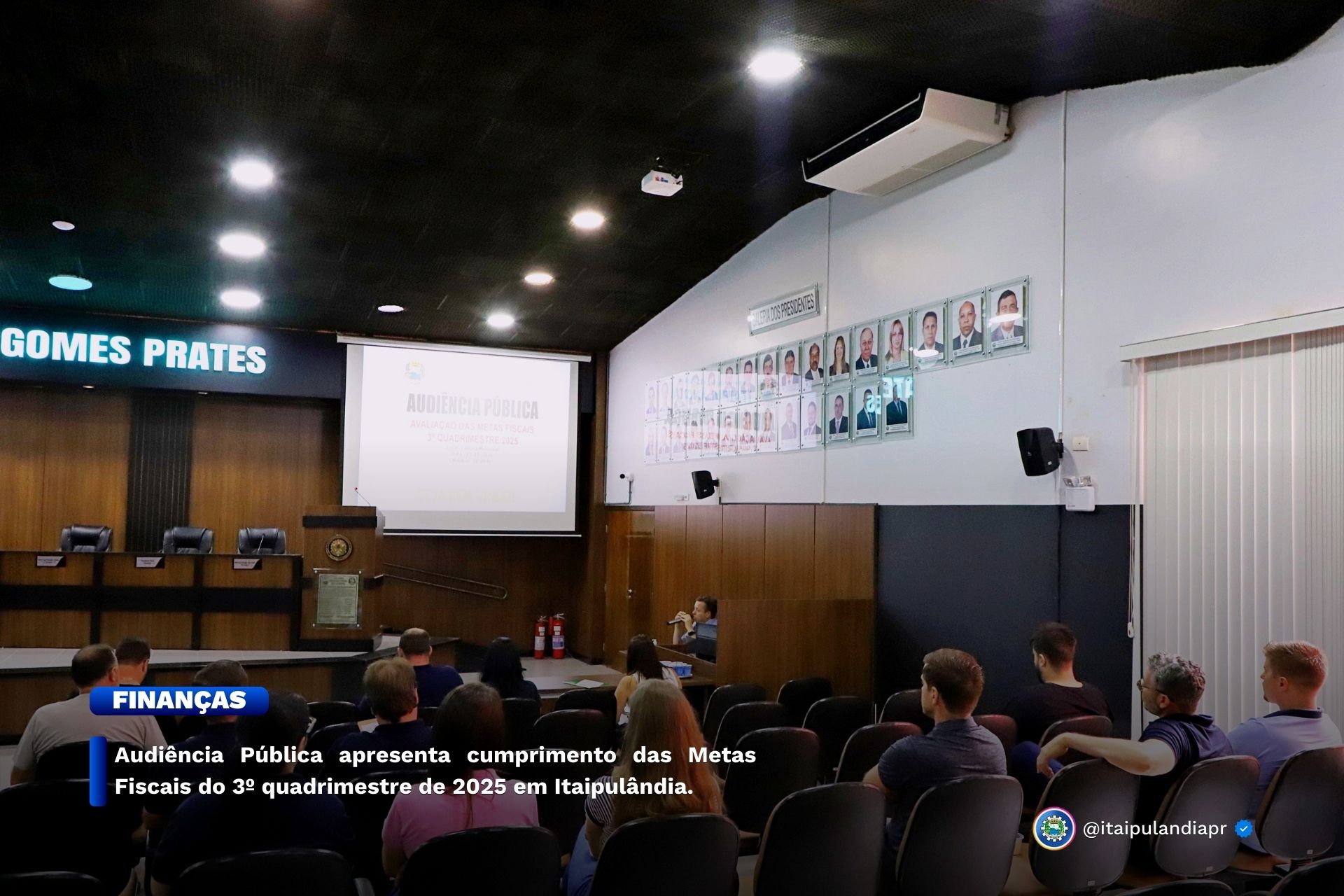 A Administração Municipal de Itaipulândia realizou, na manhã desta quinta-feira, 13 de fevereiro, às 10h, na Câmara Municipal, a Audiência Pública destinada à demonstração e avaliação do cumprimento das Metas Fiscais referentes ao 3º quadrimestre de 2025. A ação atende ao que determina a Lei de Responsabilidade Fiscal (Lei Complementar nº 101), reforçando o compromisso da gestão com a transparência e a responsabilidade na aplicação dos recursos públicos.