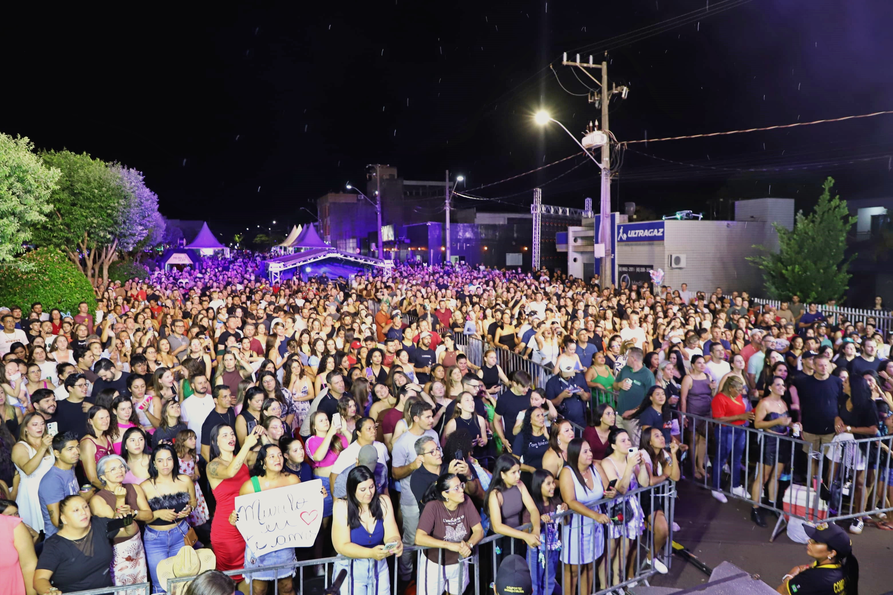 O destaque da noite foi a apresentação do cantor Murilo Huff, que animou a plateia com seus principais sucessos. O show reuniu famílias, grupos de amigas e moradores da região em um grande espetáculo musical, marcado por entusiasmo e forte participação do público.