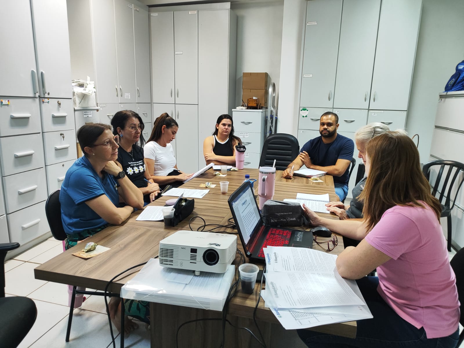 Os encontros aconteceram nas dependências da Secretaria de Educação, totalizando nove momentos de formação e alinhamento ao longo do mês.