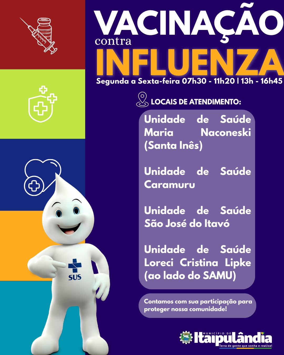 Teve início nesta segunda-feira, em março de 2026, a 28ª Campanha Nacional de Vacinação contra a Influenza em Itaipulândia. A mobilização segue as diretrizes do Ministério da Saúde e prioriza grupos considerados mais vulneráveis aos efeitos do vírus da gripe, como idosos, crianças, gestantes e pessoas com comorbidades. A ação busca ampliar a cobertura vacinal e prevenir complicações decorrentes da doença.