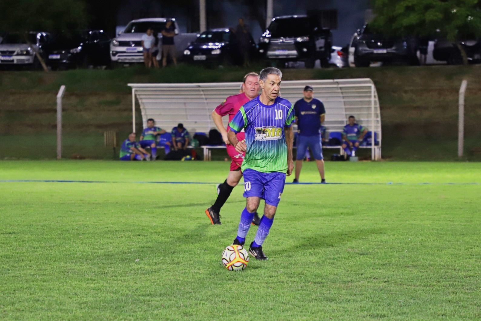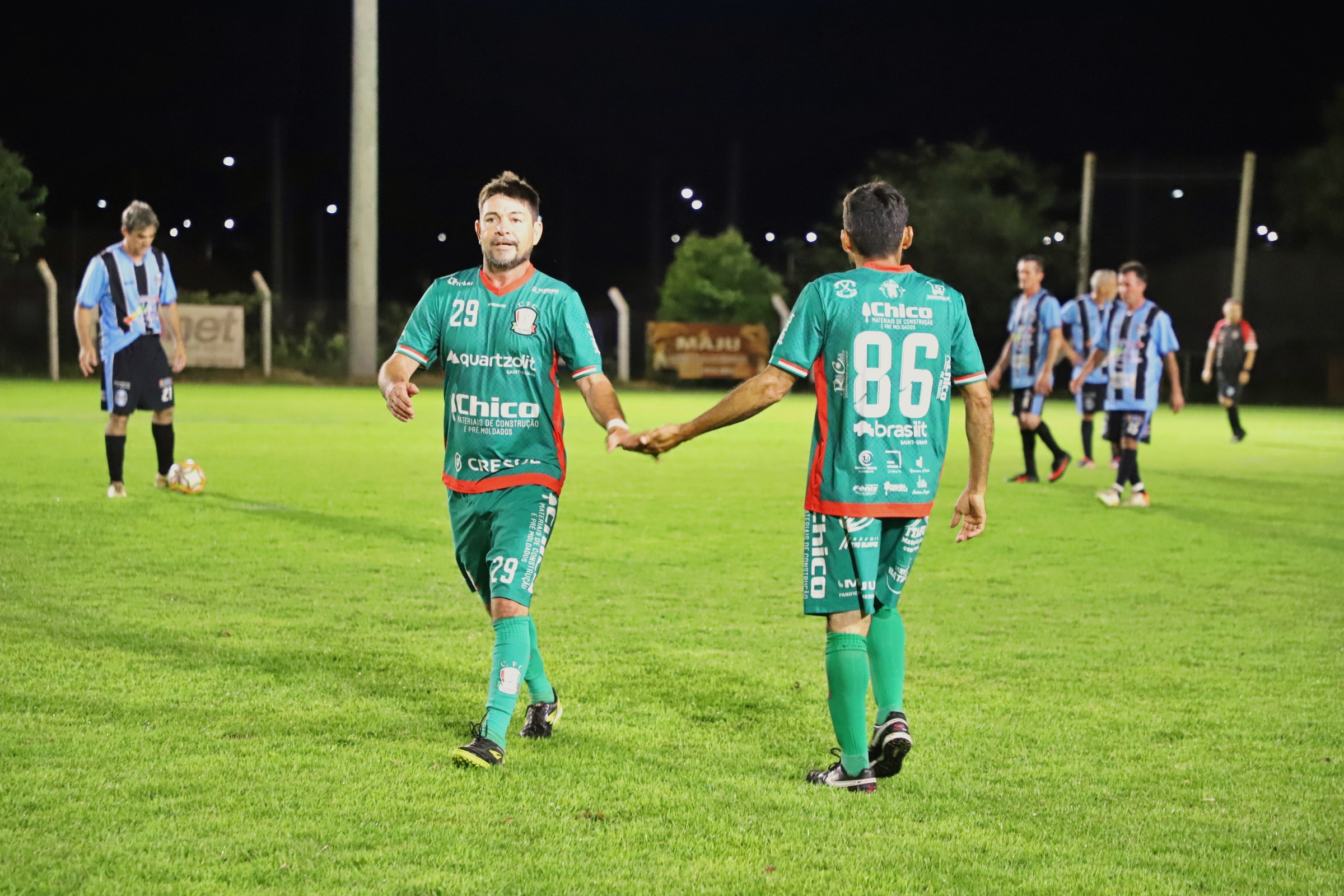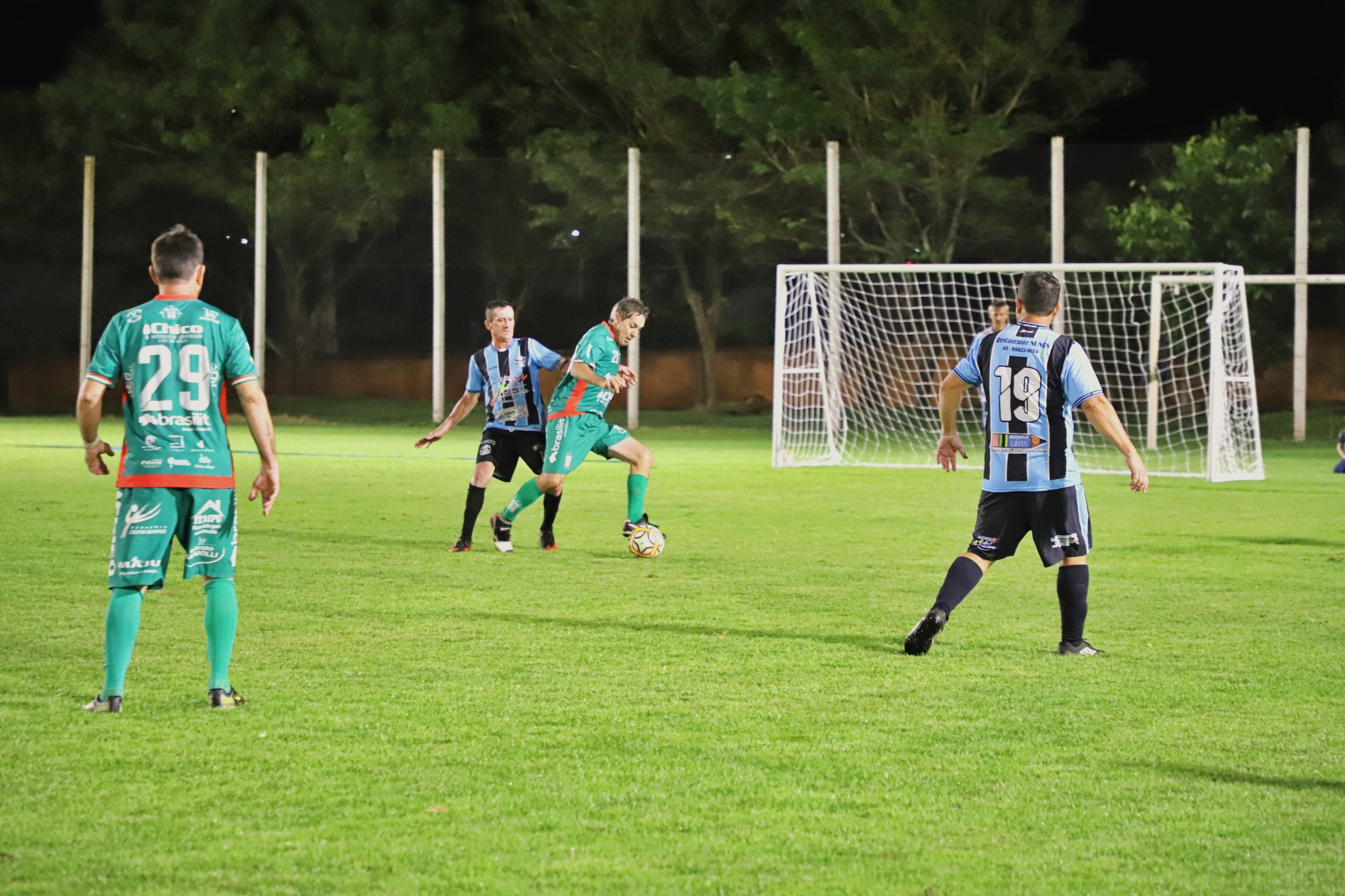 A abertura da primeira rodada do Campeonato de Futebol Suíço 45+ movimentou a noite da última quinta-feira (09), no campo Sargento Dias, no bairro Caramuru. O evento reuniu atletas e torcedores e deu início à competição com duas partidas, marcadas por bom público e clima de integração entre os participantes.