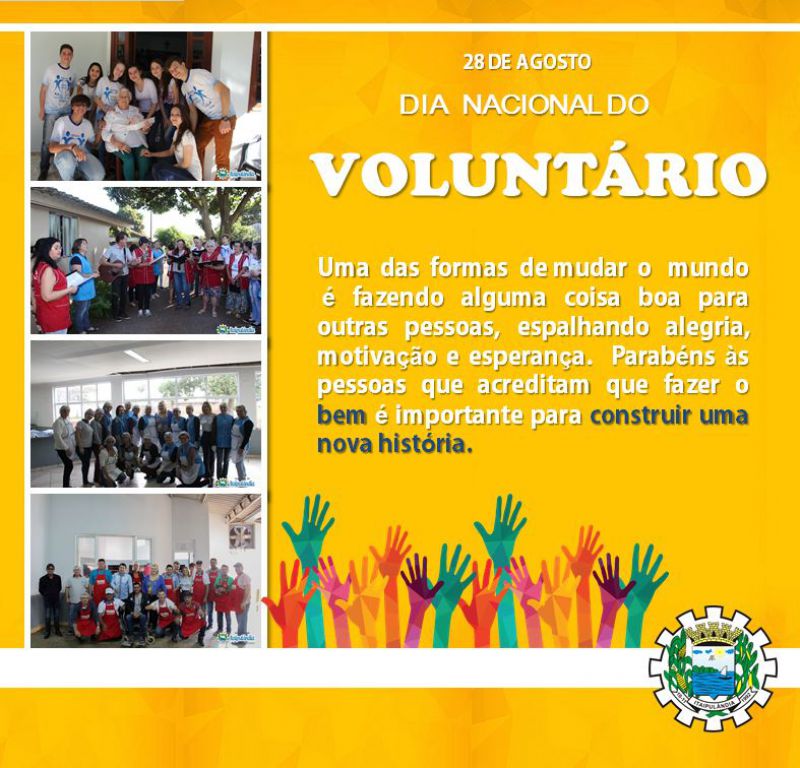 Dia 28 de Agosto, Dia Nacional do Voluntário. A Administração Municipal presta homenagem a todos que prestam serviços voluntários em Itaipulândia.