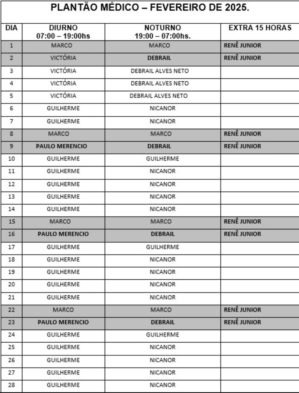 ESCALA MÉDICA FEVEREIRO DE 2025 |