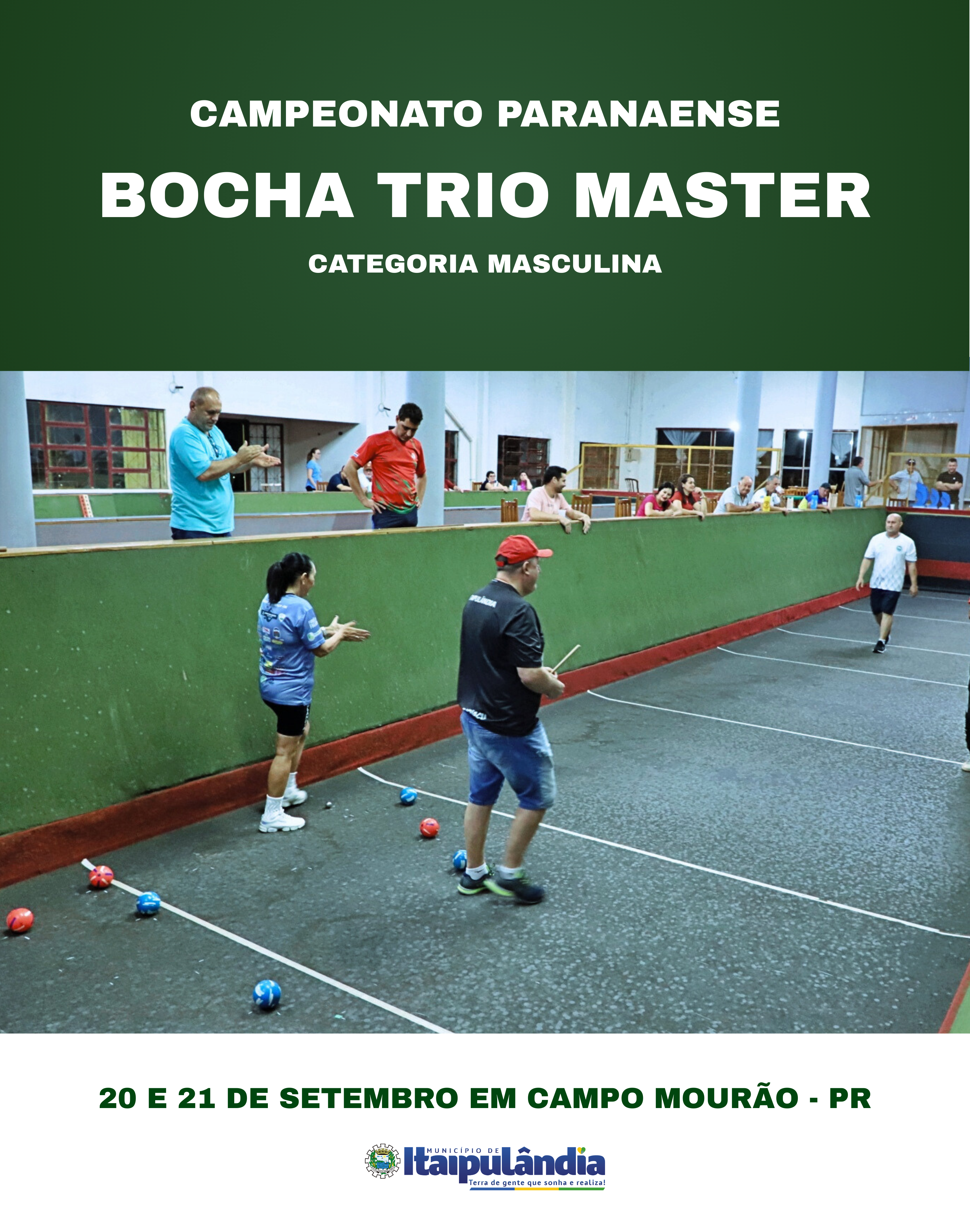 Neste final de semana nossa equipe de Bocha Masculina Trio Master estará em Campo Mourão disputando o Campeonato Paranaense de Bocha Trio Master Categoria Masculina!