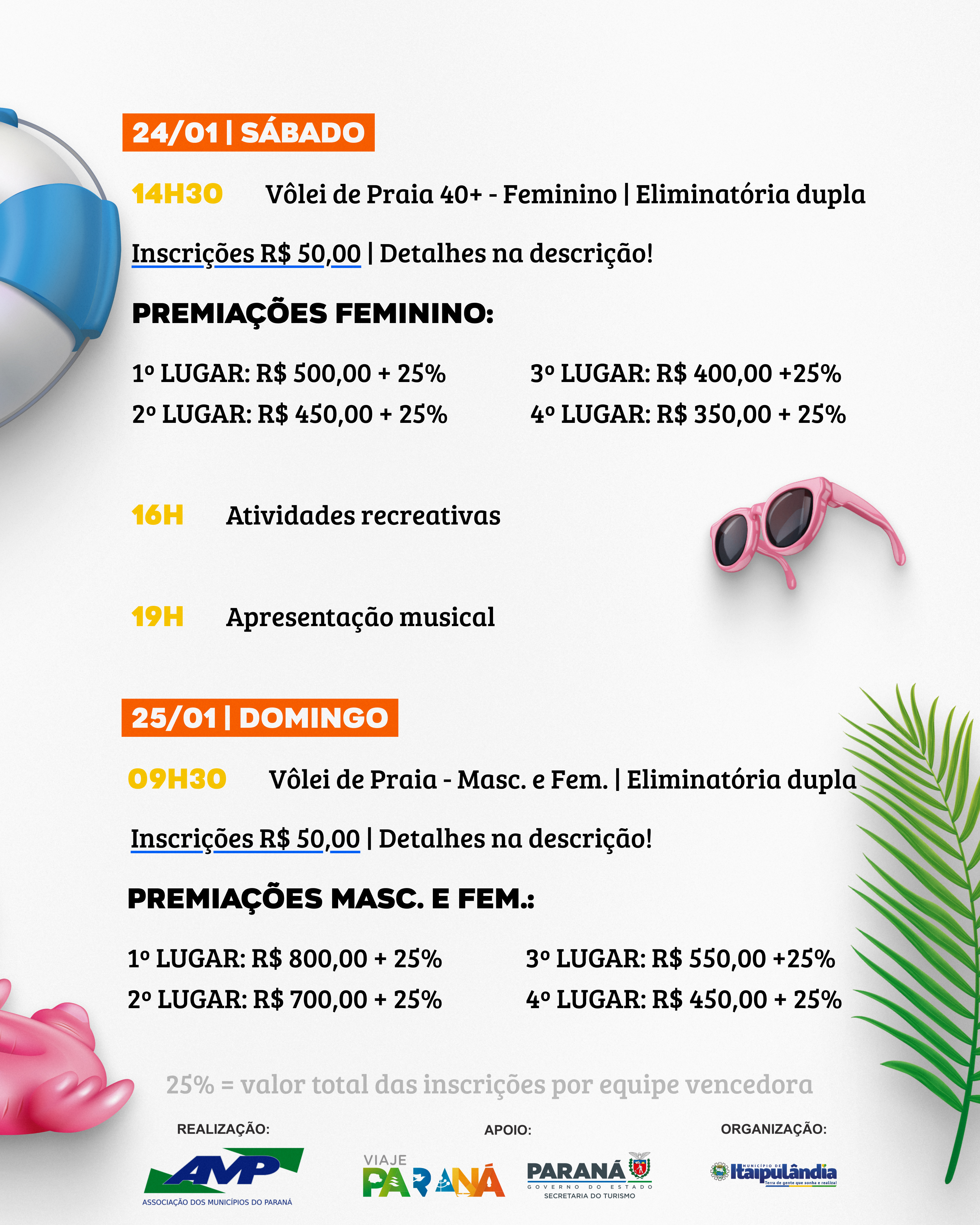 🔹 09h30 – Vôlei de Praia – Masculino e Feminino | Eliminatória dupla
