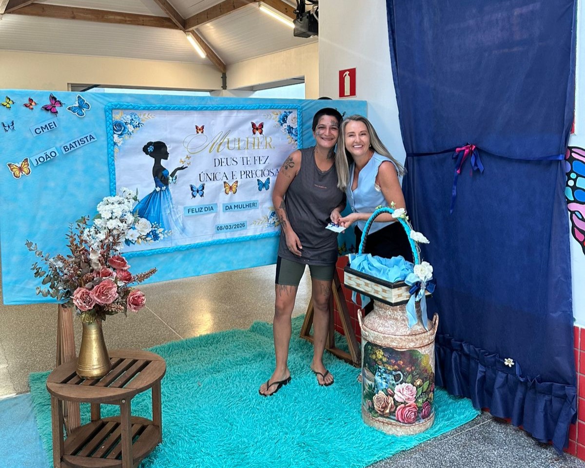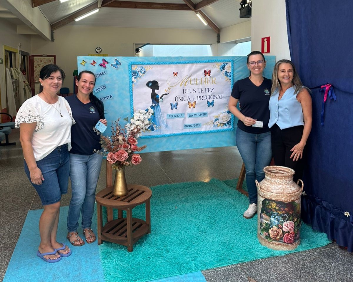 Em comemoração ao Dia Internacional da Mulher, o CMEI João Batista Felicíssimo Ribeiro realizou uma programação especial voltada à valorização das mulheres que atuam na instituição. A iniciativa foi conduzida pela diretora Solange do Carmo Simon e pela coordenadora Marisônia Batista da Silva, que organizaram um momento de acolhimento e reflexão para todas as profissionais da equipe escolar. A atividade destacou a importância das mulheres em diferentes funções dentro do ambiente educacional.