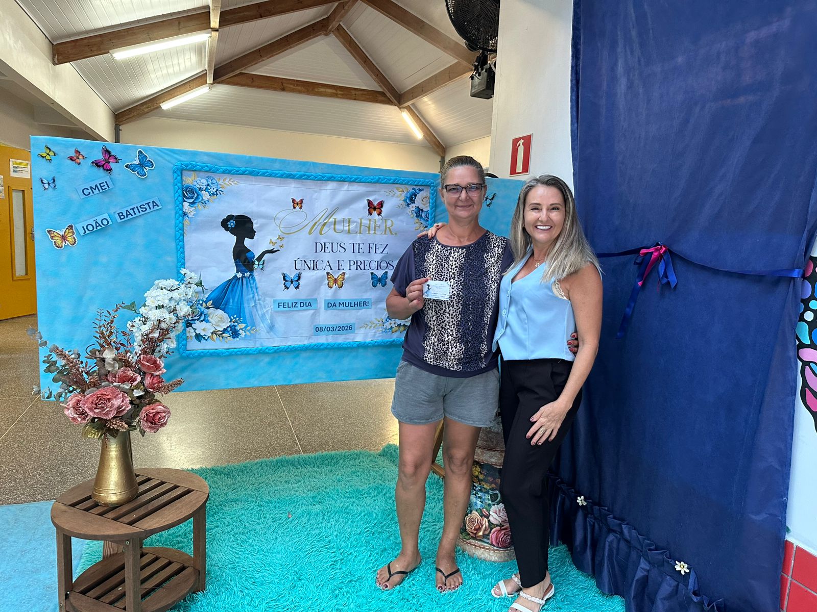 Além da palestra, a instituição preparou uma recepção especial para as mulheres que levaram as crianças ao CMEI, com um painel motivacional com uma mensagem de valorização em homenagem à data. A ação buscou reforçar o reconhecimento da importância das mulheres na comunidade escolar, fortalecendo os vínculos entre a instituição, as famílias e os alunos.