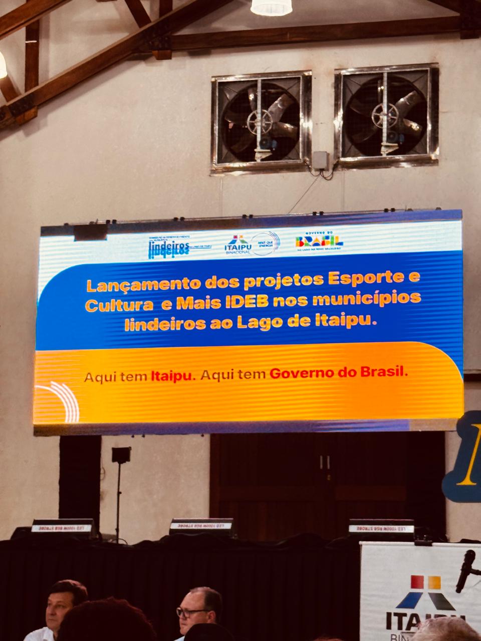 Na última sexta-feira (20), representantes do Poder Executivo e do Poder Legislativo de Itaipulândia participaram do lançamento dos projetos “Esporte e Cultura” e “Mais IDEB”, voltados aos municípios lindeiros ao Lago de Itaipu. O evento também contou com a presença de membros da Secretaria Municipal de Educação, reforçando o compromisso conjunto com o desenvolvimento social e educacional da região.