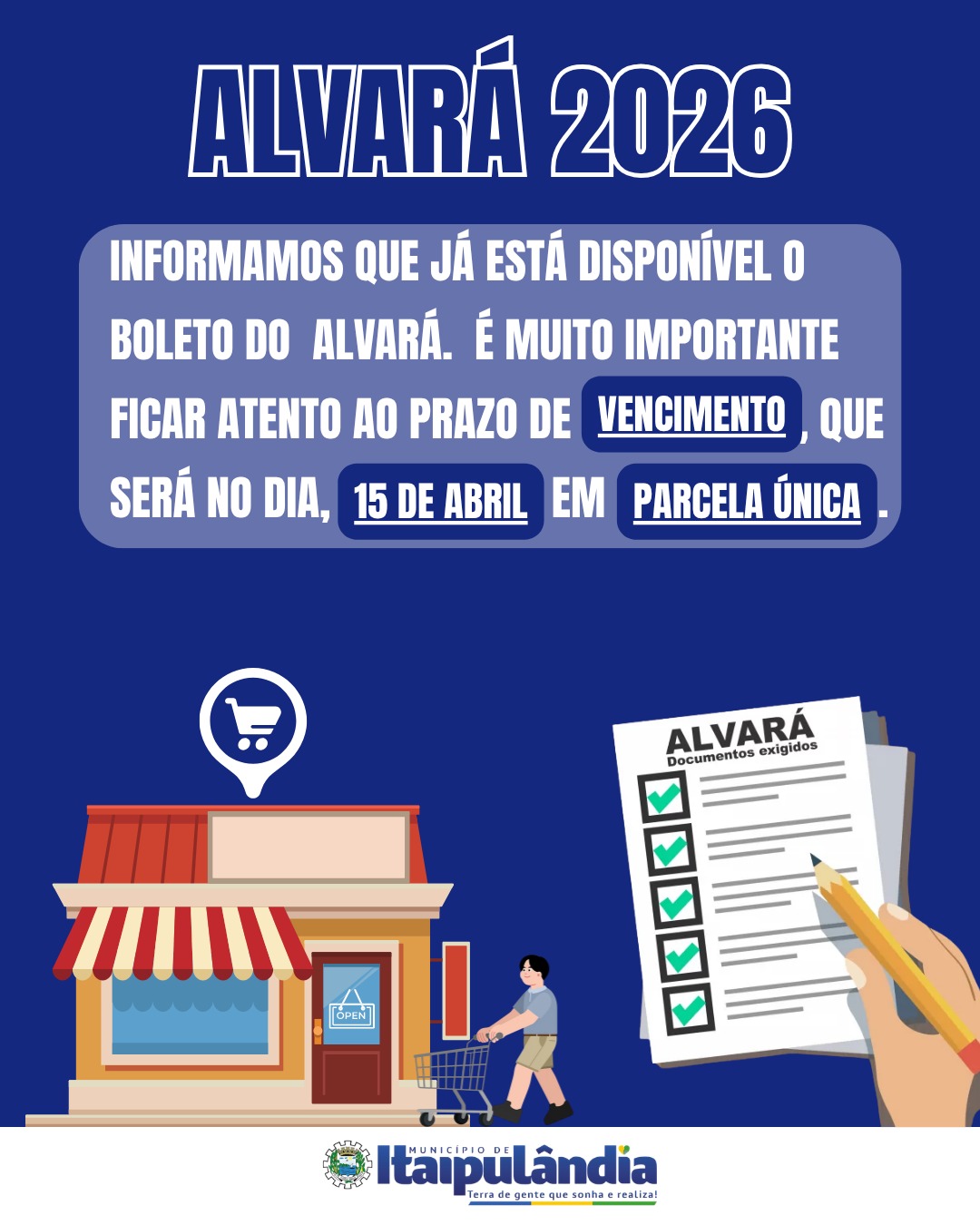 Informamos que o boleto do Alvará 2026 já está disponÃvel.