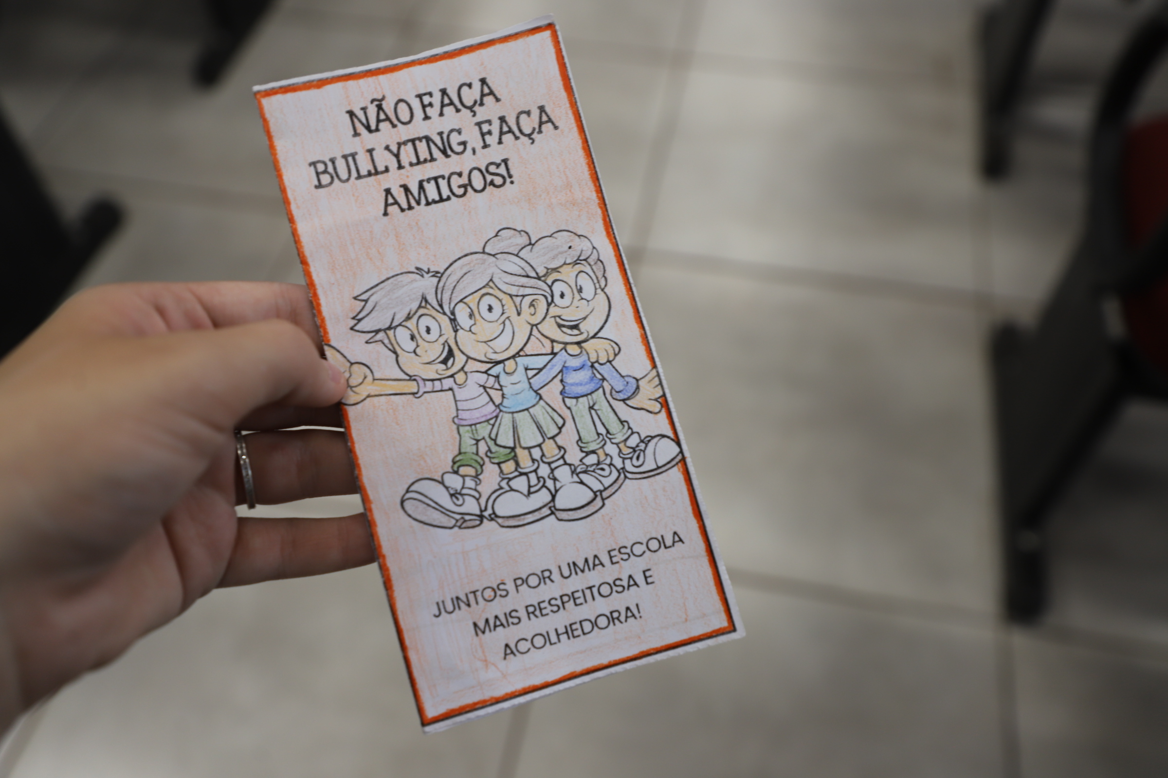 Ação educativa mobiliza estudantes contra o bullying em colégio estadual.