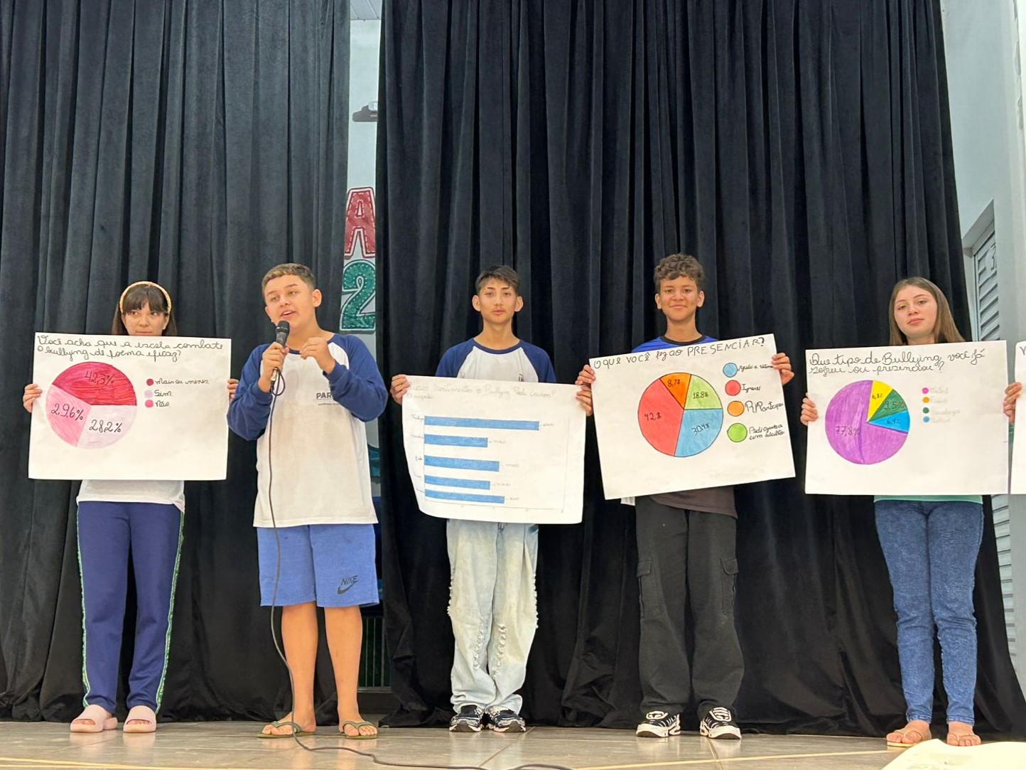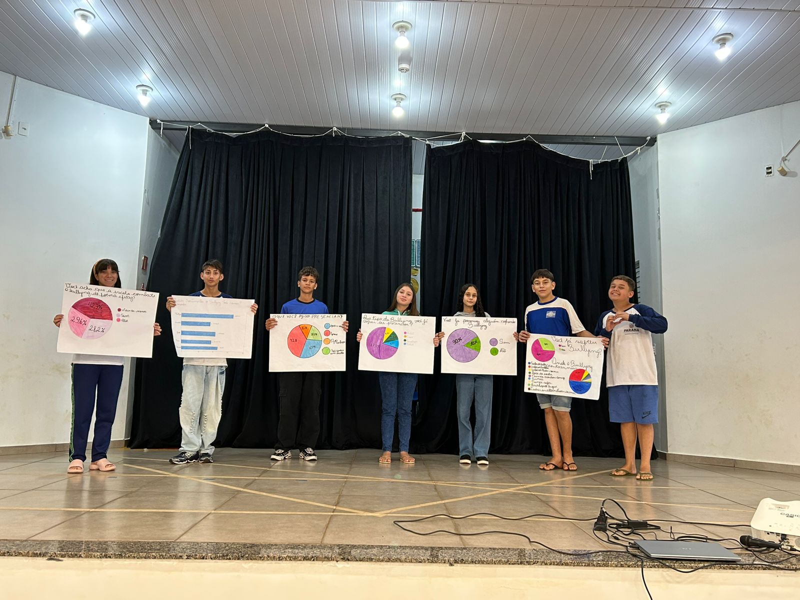A atividade foi construída de forma multidisciplinar e contou com participação ativa dos alunos, que utilizaram música, paródias, gráficos e teatro para expressar suas percepções sobre o bullying. A proposta buscou ir além do ensino teórico, permitindo que os estudantes vivenciassem o tema na prática e ampliassem a compreensão sobre suas consequências no cotidiano escolar.