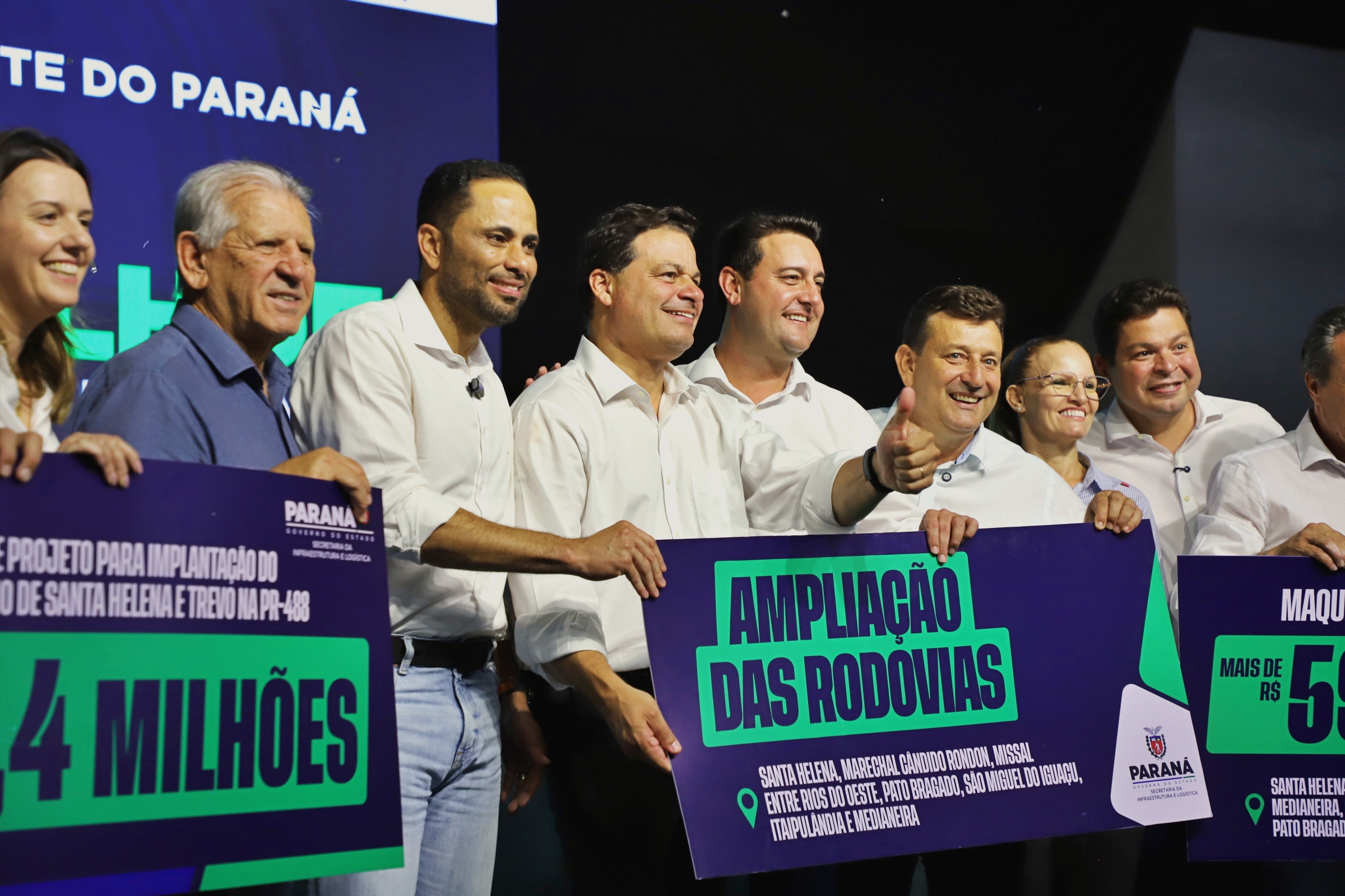 Representantes dos poderes Executivo e Legislativo de Itaipulândia participaram, em Santa Helena, de um evento com a presença do governador do Paraná, Carlos Massa Ratinho Junior, voltado ao anúncio de um conjunto de obras de infraestrutura rodoviária que irá contemplar municípios do Oeste do Estado. A iniciativa integra um pacote de intervenções em importantes corredores logísticos da região.
