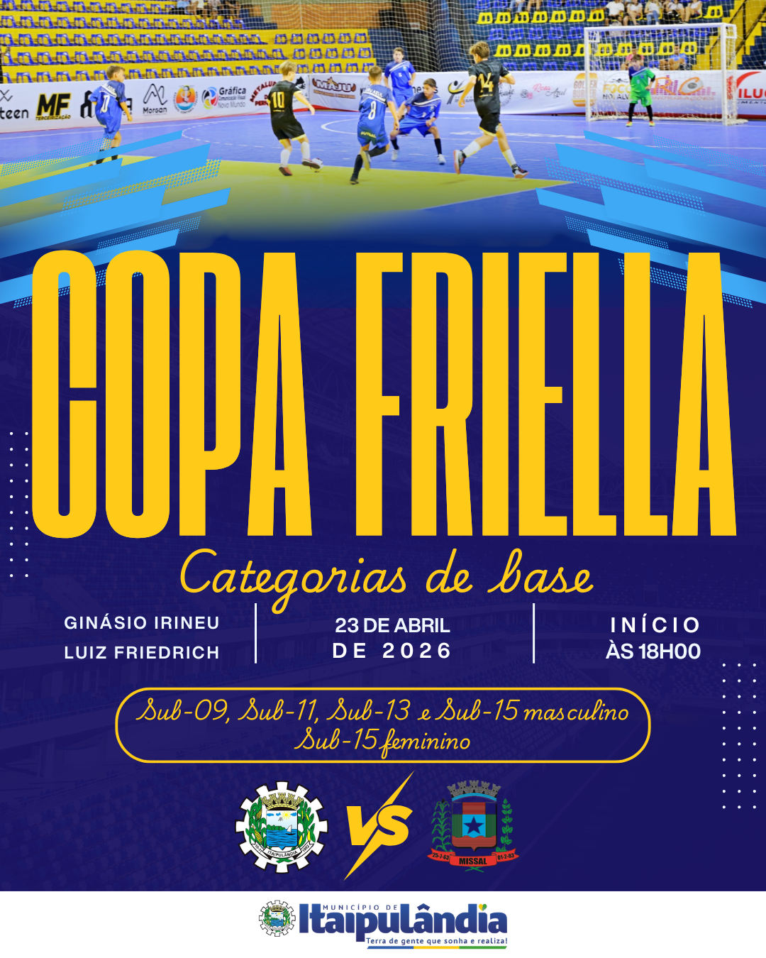 📍 Ginásio Irineu Luiz Friedrich 📅 23 de abril de 2026 ⏰ Início às 18h00